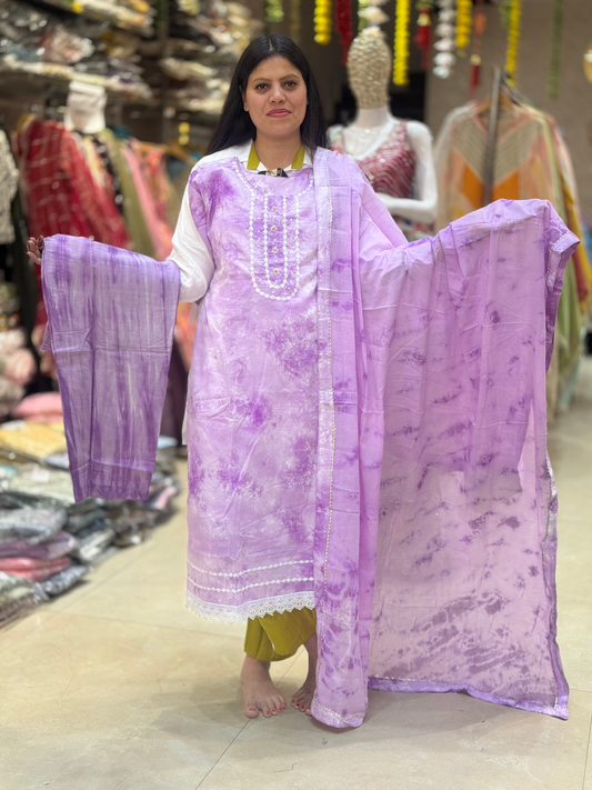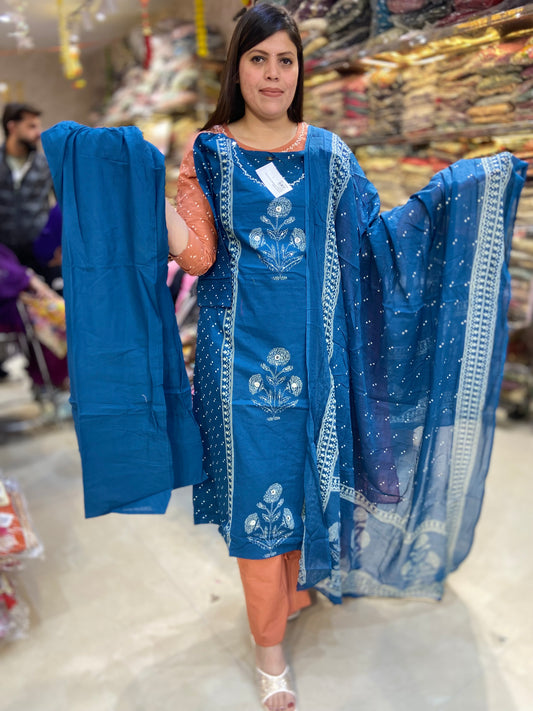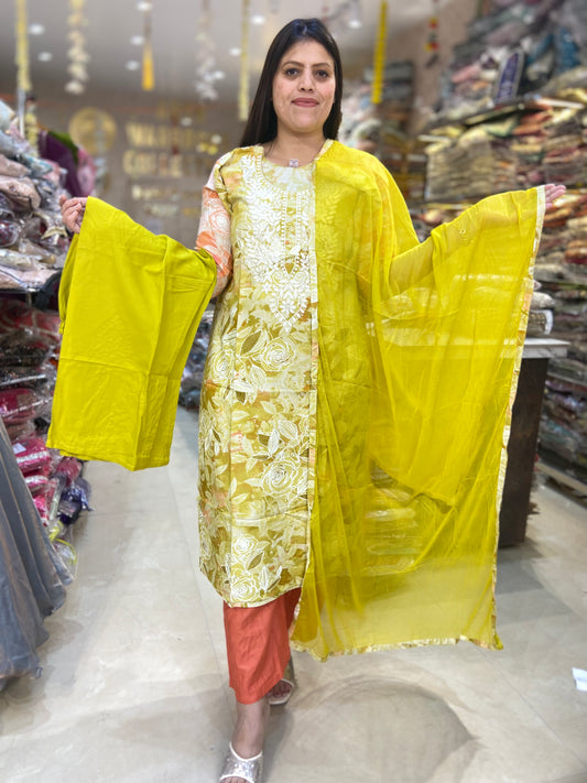 PURE COTTON V NECK DESIGN WITH ORGANZA DUPPTA SUIT