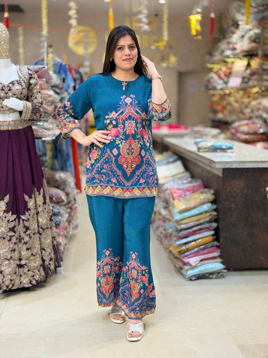 BLUE PURE CREPE CORDSET