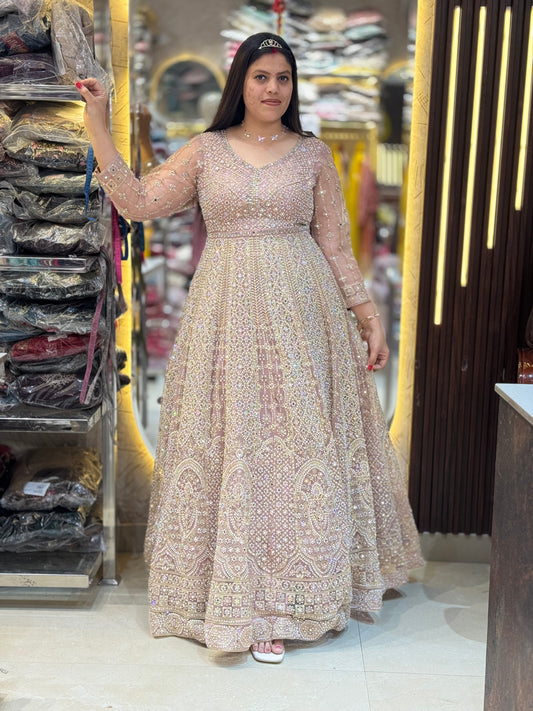 BABY PINK FULL PEAL AND MIRROR WORK FULL FLAIR GOWN