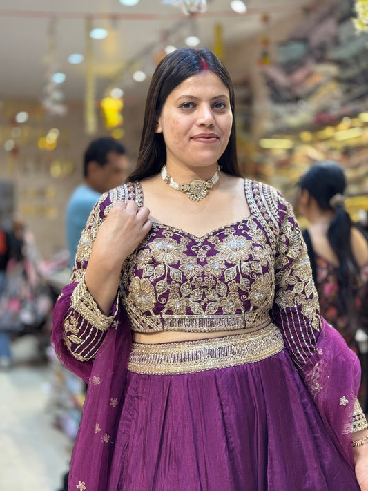 PURPLE GOLDEN SIPI WORK FULL FLAIR LEHENGA