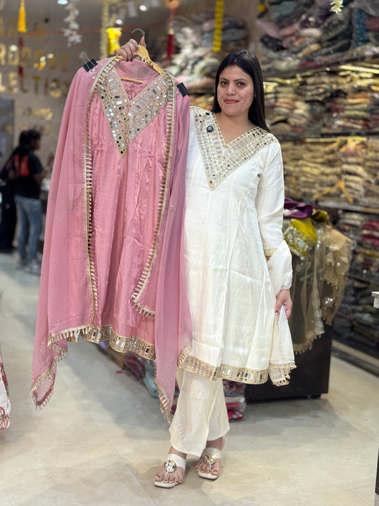 BEAUTIFUL GLASS TISSUE ORIGNAL MIRROR WORK SUIT