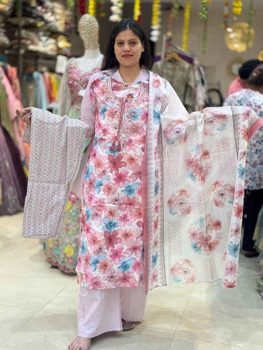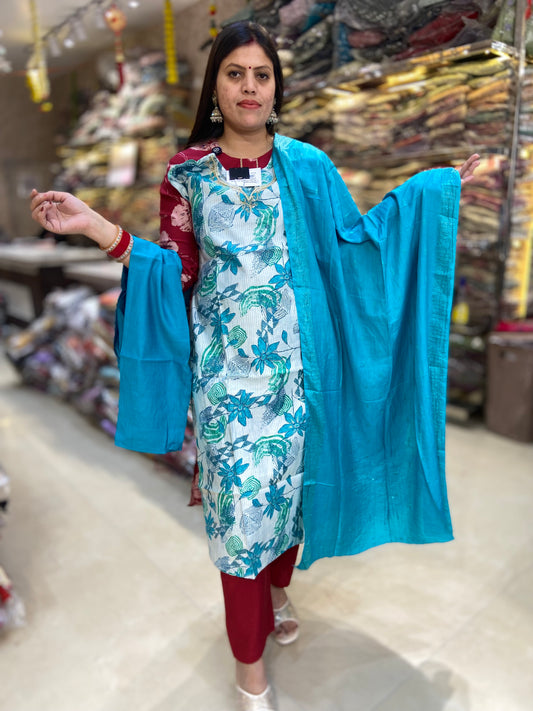 PURE COTTON V NECK DESIGN WITH ORGANZA DUPPTA SUIT