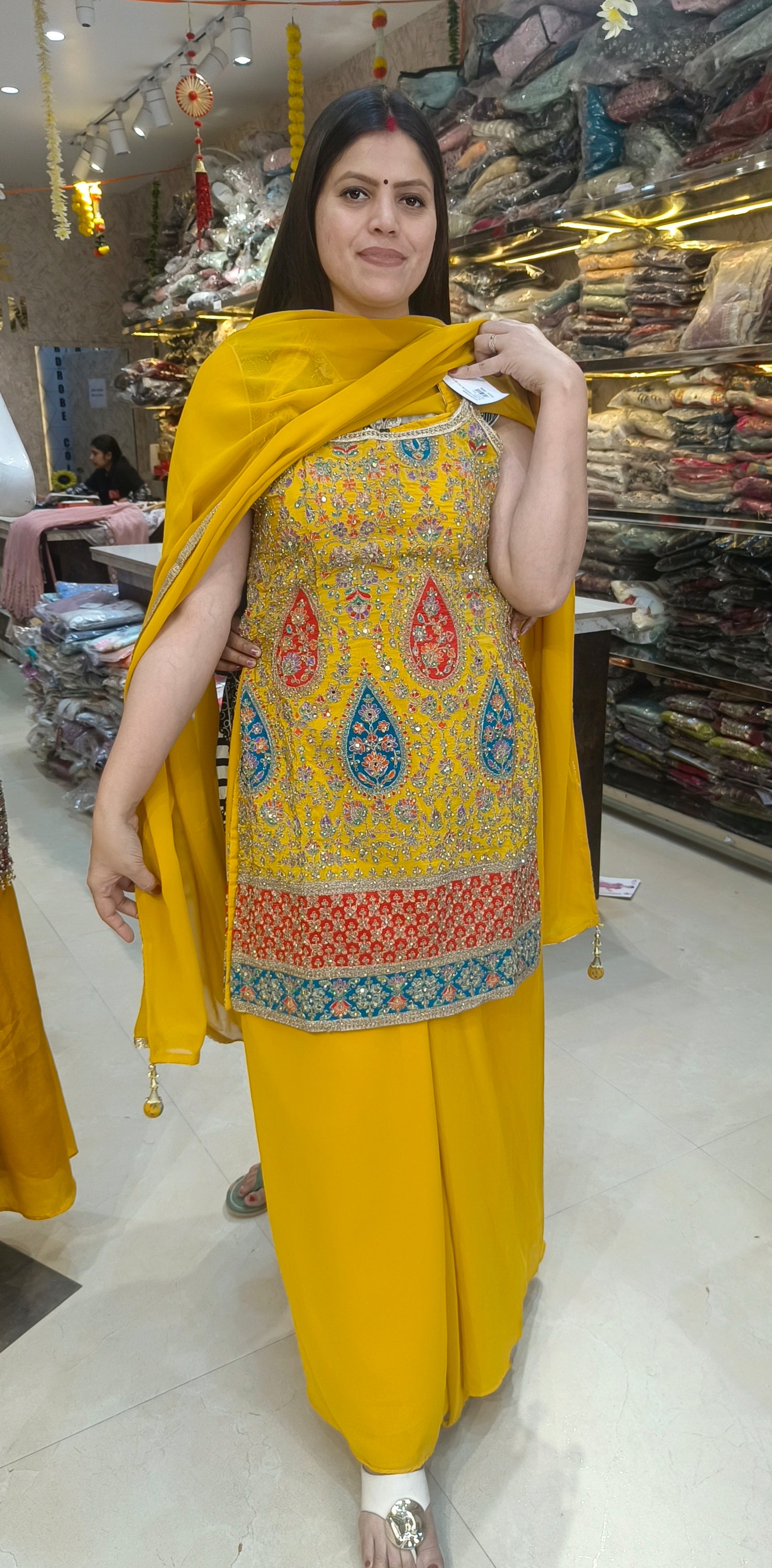 PARTY WEAR SHORT TOP SIPPI WORK WITH FULL FLAIR JAFFA