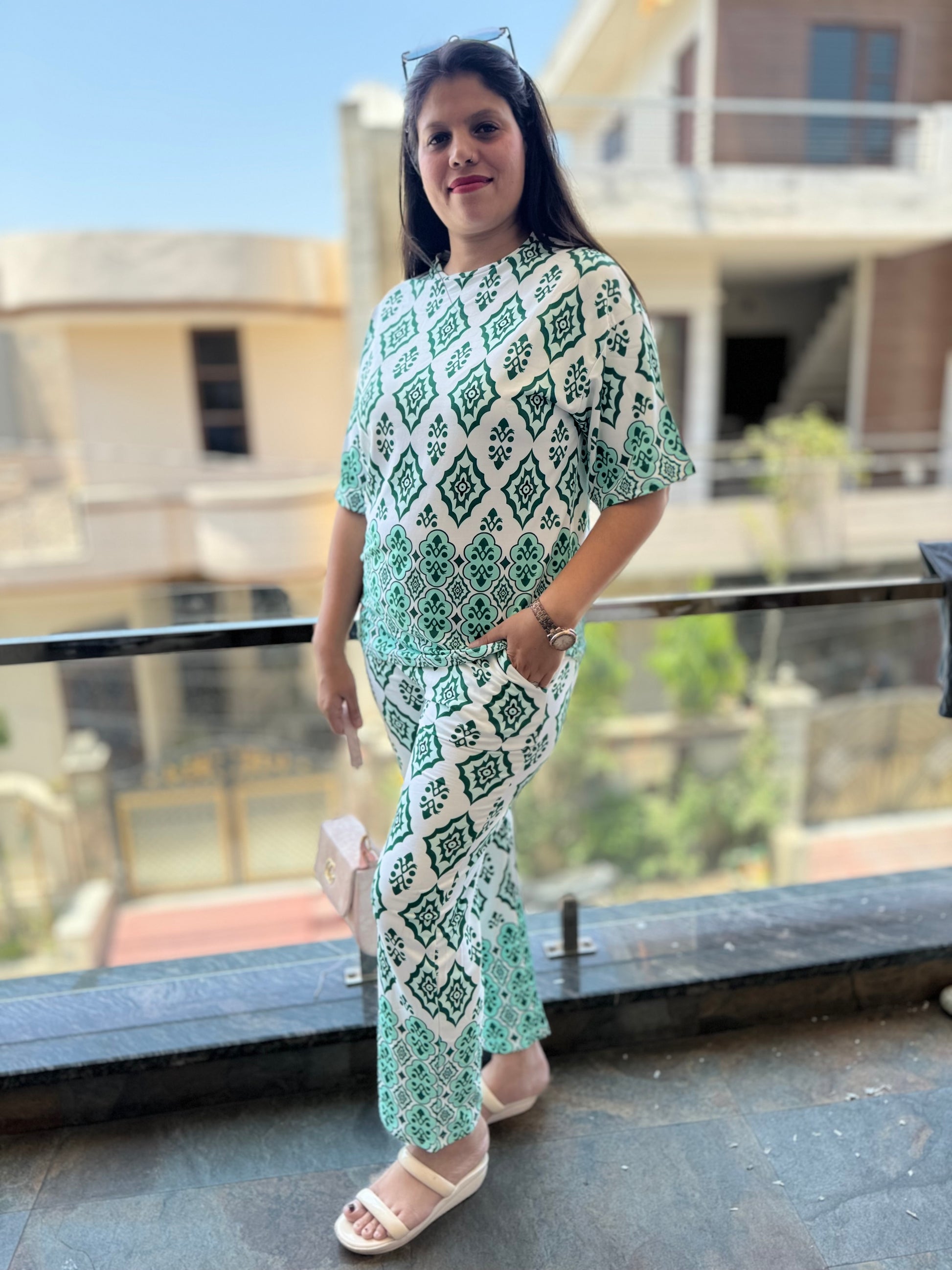 Crafted from high-quality Spendix cotton, the Bandhani Print Cordset offers a comfortable and versatile fit in sizes M to XXL. The top measures 29 inches in length, while the bottoms reach 40 inches, providing both style and function. Perfect for any occasion, this cordset ensures effortless style and comfort.