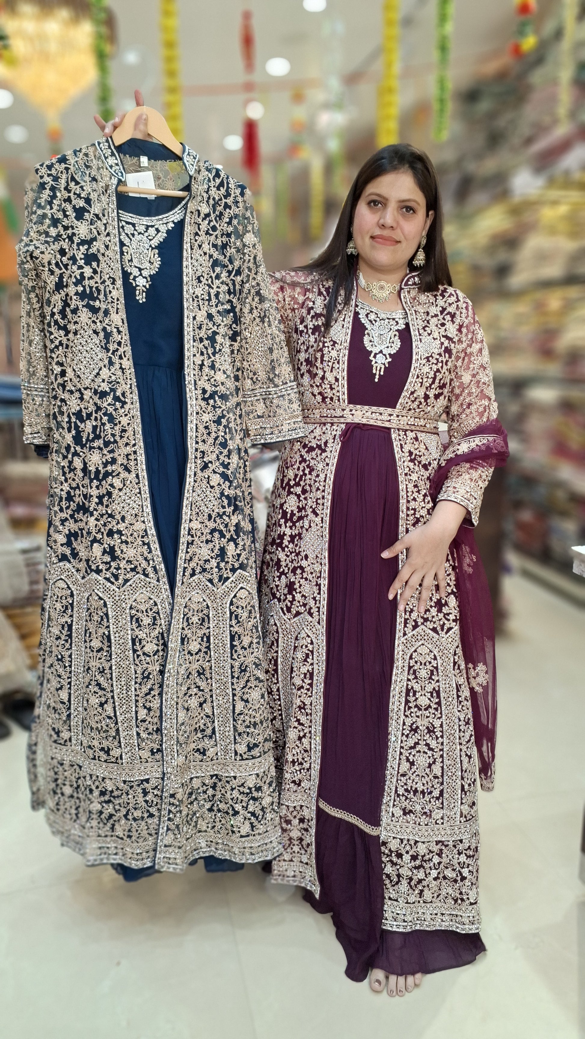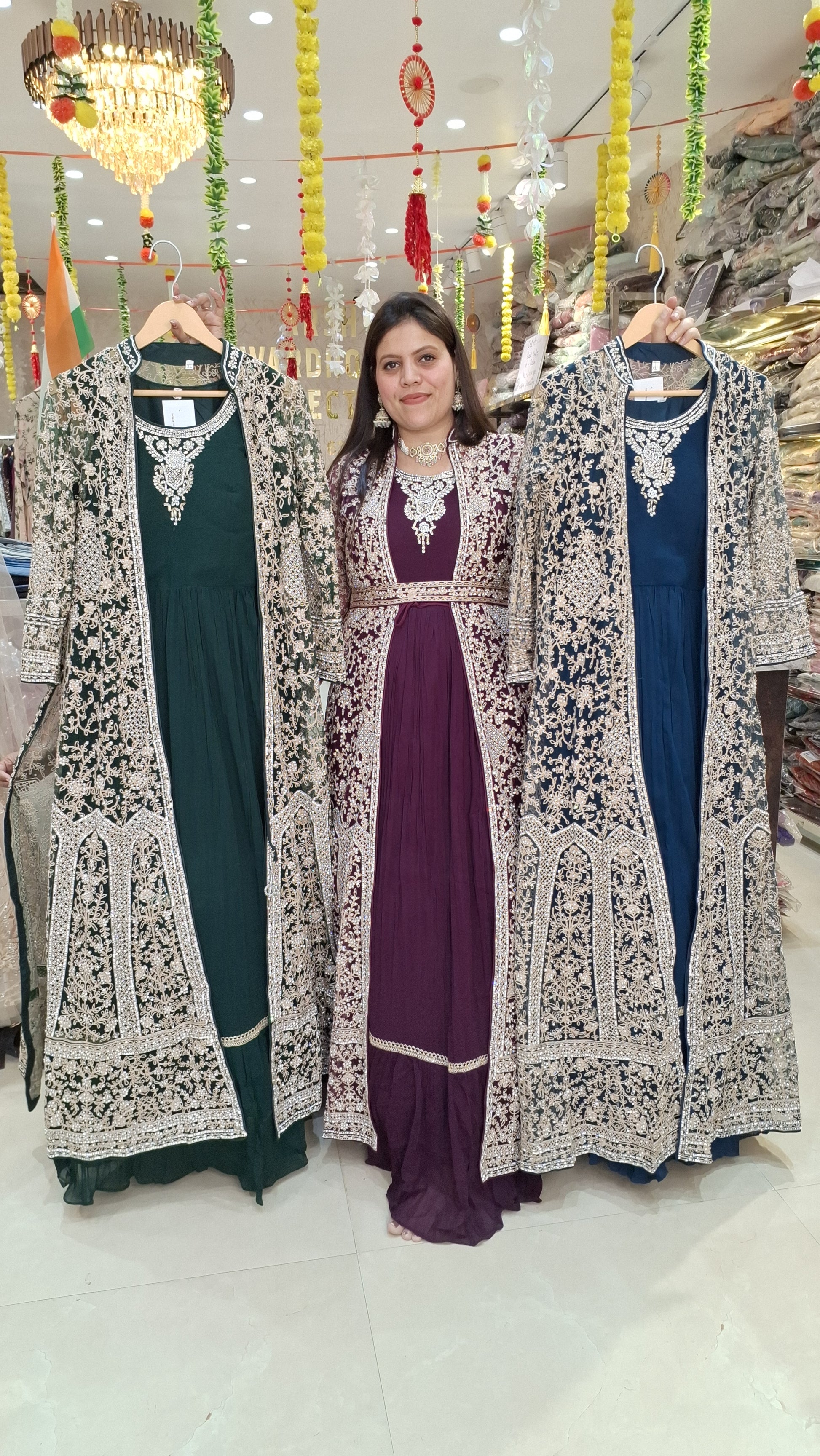 BEAUTIFUL FULL ORIGNAL MIRROR WORK CAPE WITH GEORGET GOWN FOR WEDDING WEAR