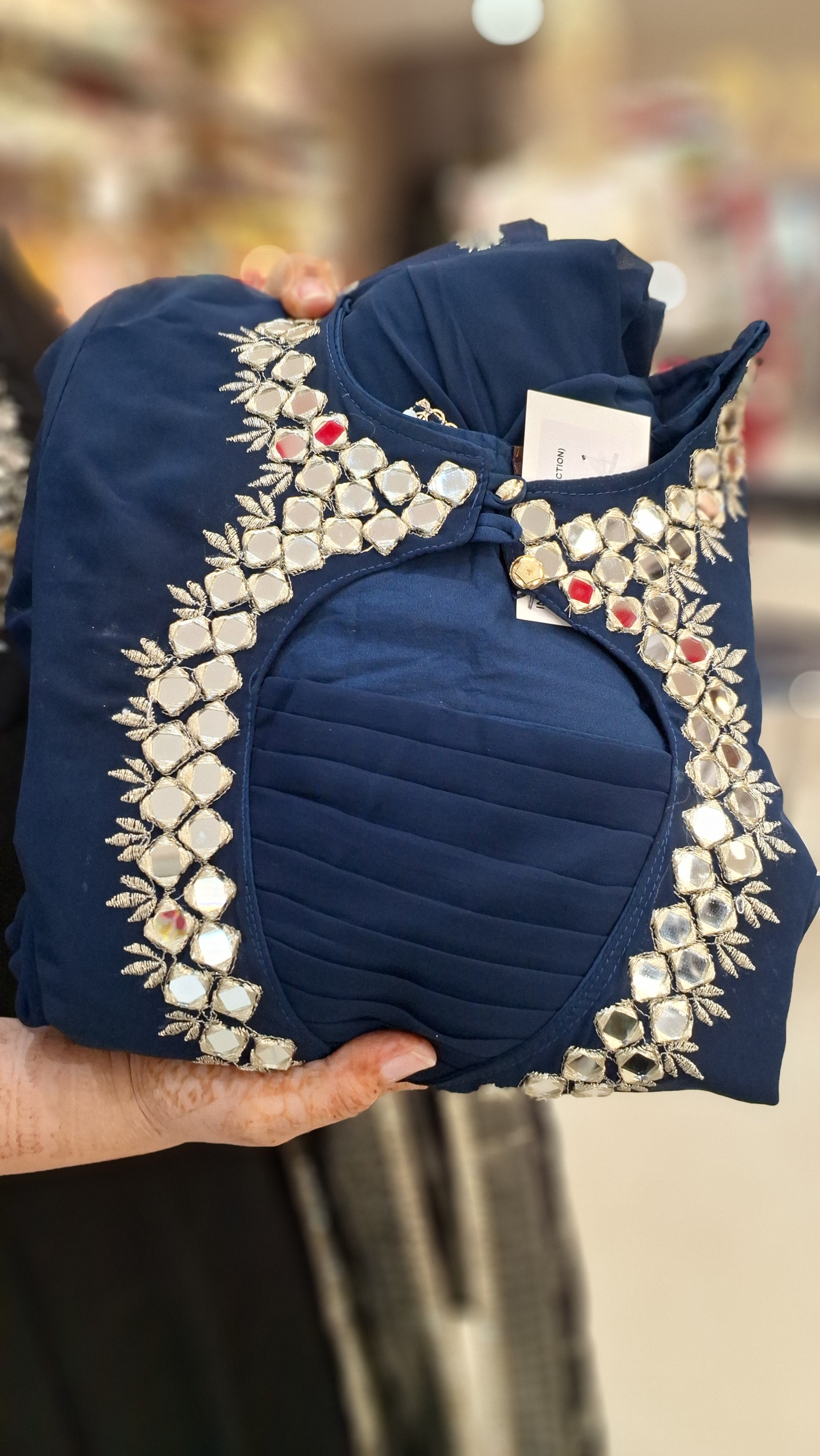 BEAUTIFUL NECK DESIGN BACK AND FRONT ORIGNAL MIRROR WORK ANARKALI