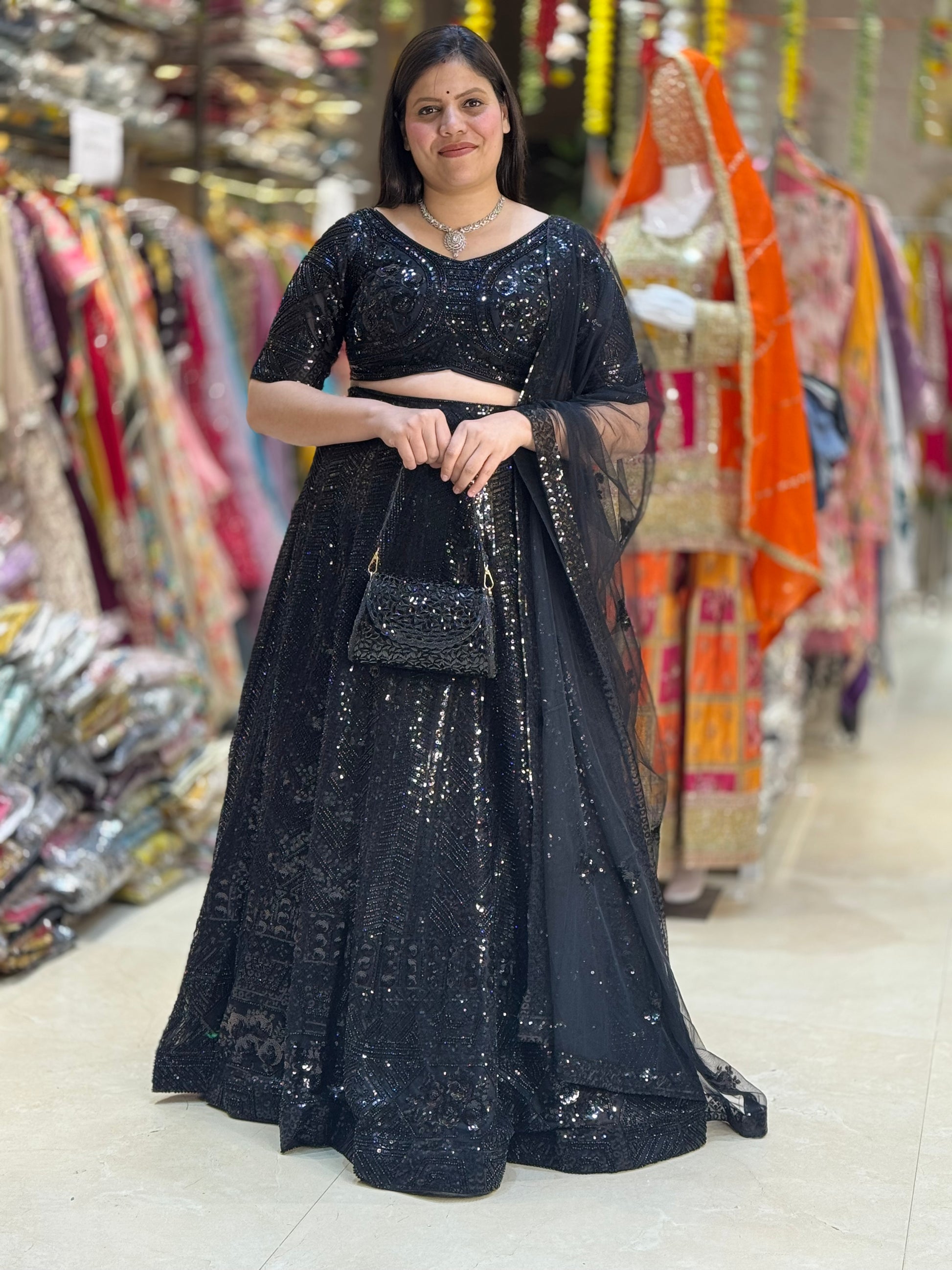 BLACK Dazzling Sequin Work Heavy Lehengas – Glamorous & Grand | Indipehnawa