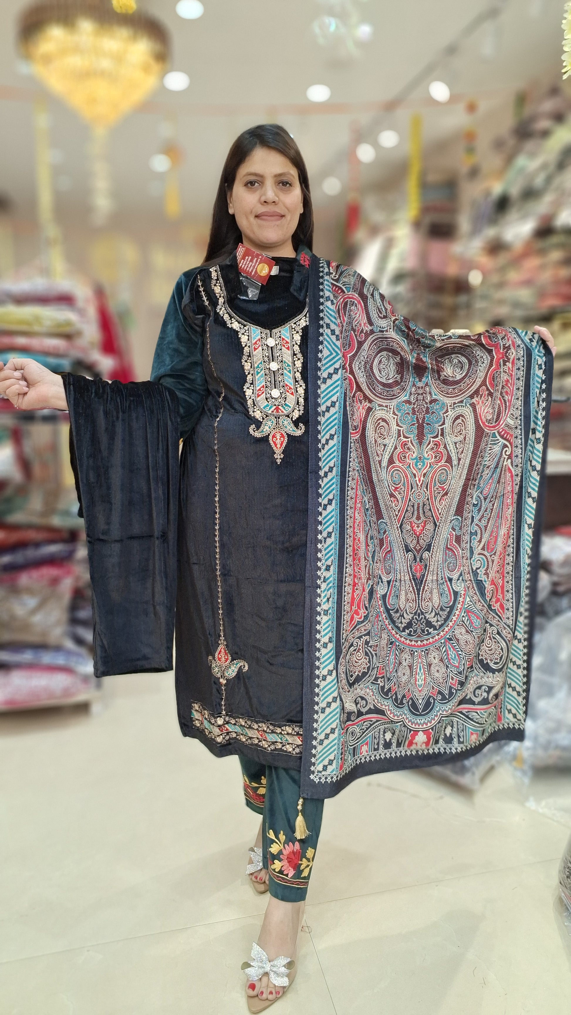 BLACK PREMIUM VELVET TILLA WORK WITH 3PC SUIT