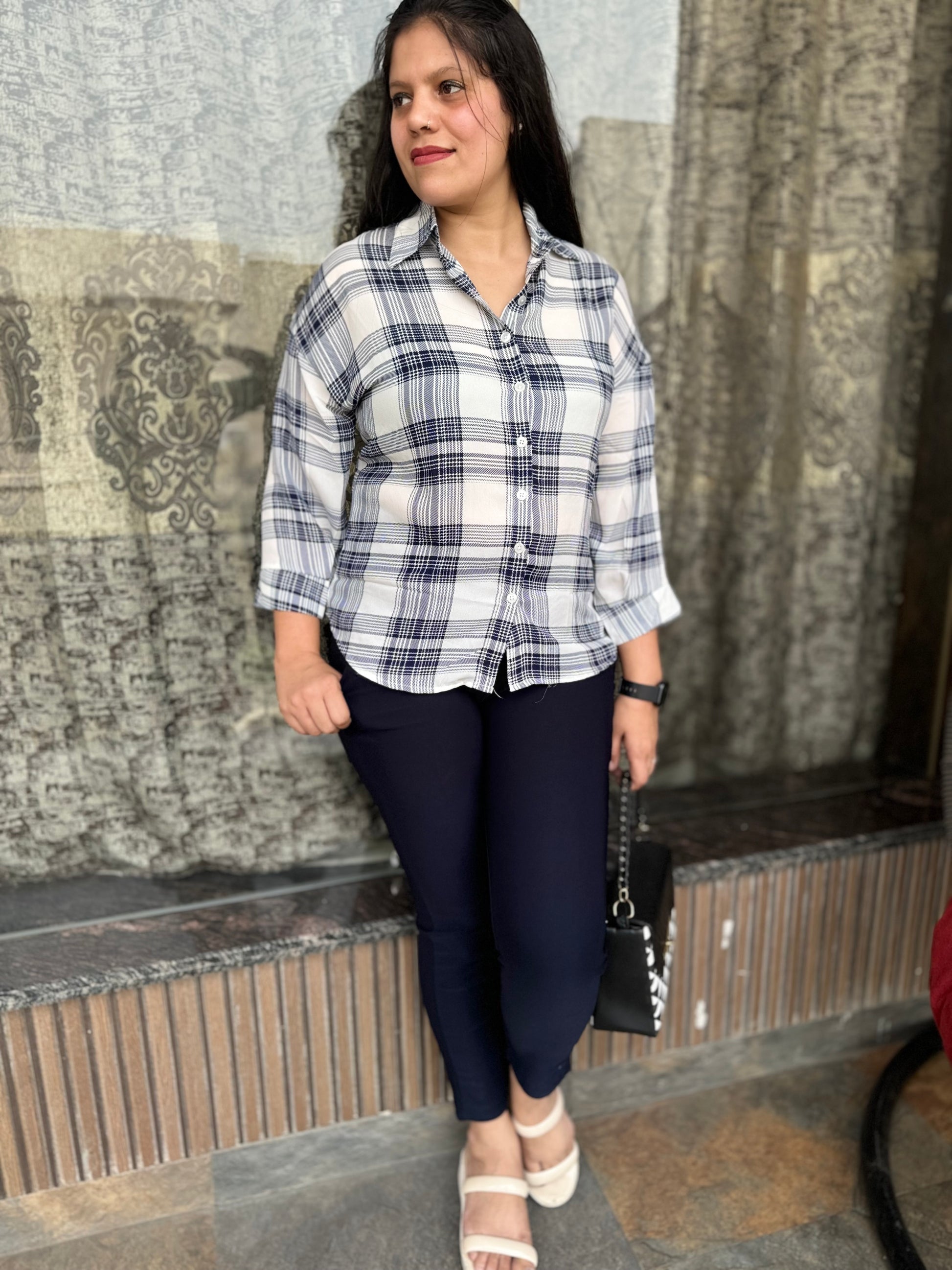 Expertly crafted from high-quality chiffon georgette, this Check Shirt offers a comfortable and versatile fit up to size XXL. With a shirt length of 28 inches , this shirt is perfect for any occasion. Upgrade your wardrobe with this stylish and effortless look.