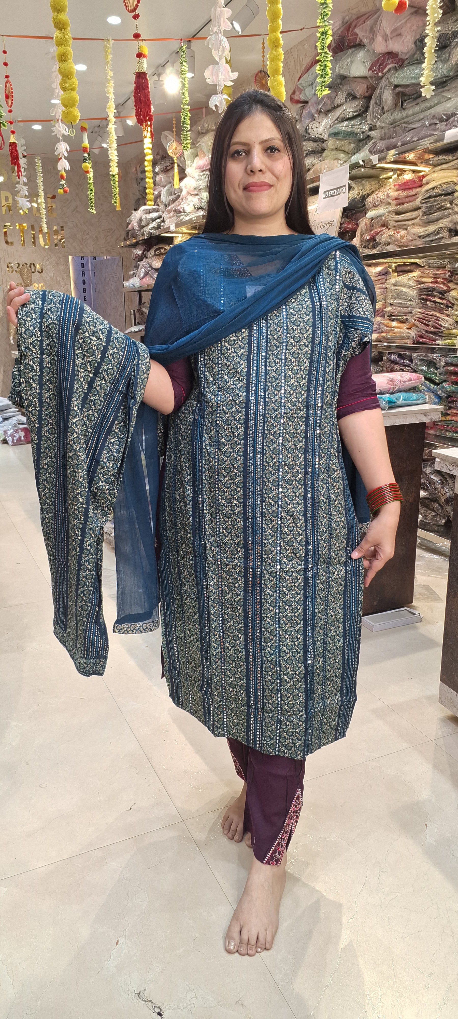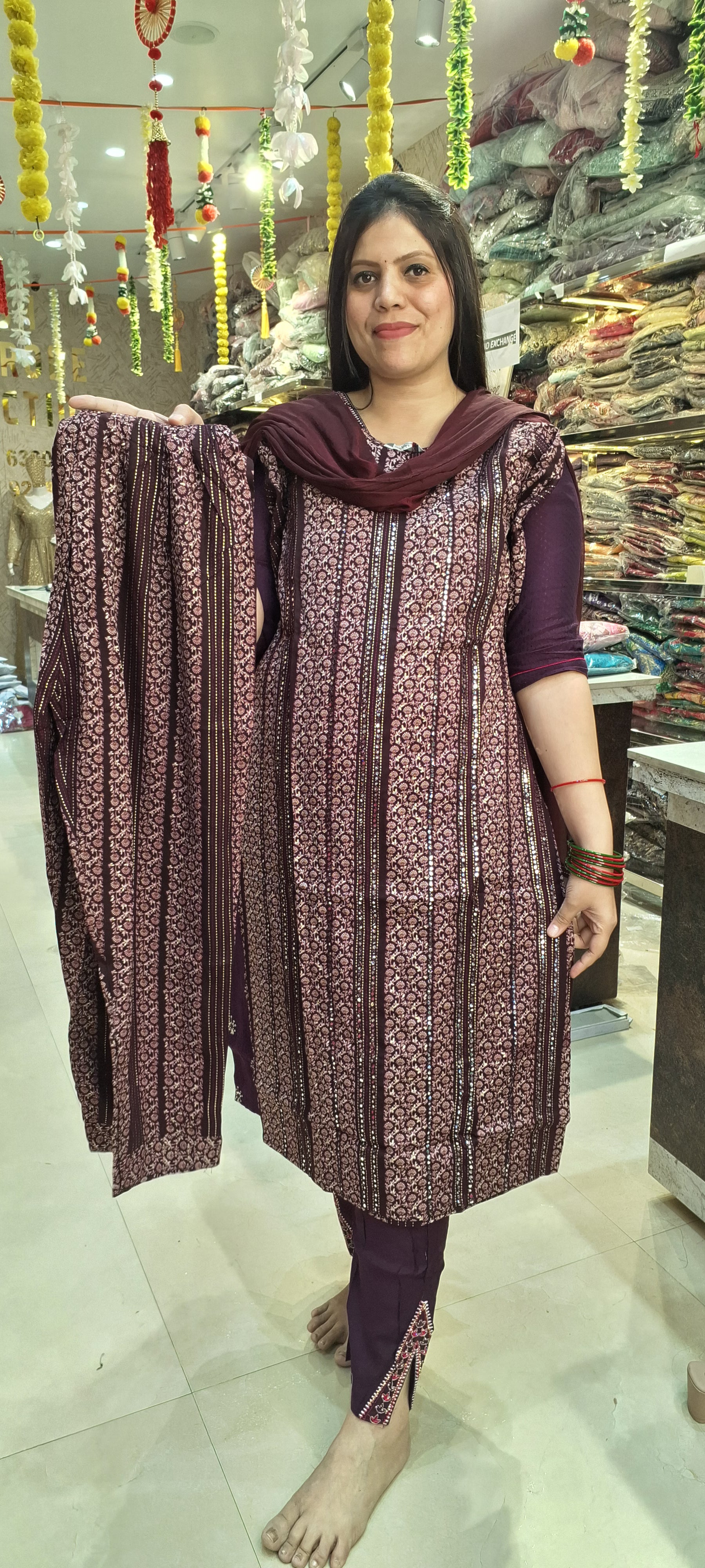 Experience the elegance of the Cotton Thread Work Suit by Indipehnawa, crafted from breathable cotton fabric for all-day comfort. Featuring intricate thread work on the shirt, this suit combines traditional artistry with modern style. Paired with a luxurious silk dupatta, it offers a refined look suitable for special occasions. Available in sizes M to XXL, it ensures a perfect fit for diverse body types.