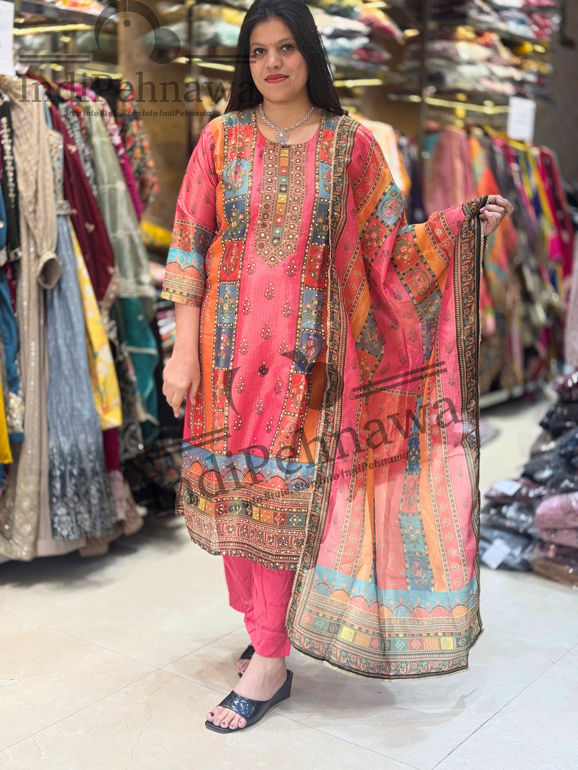 Elegant Dola Silk Suit with Full Mirror & Handwork