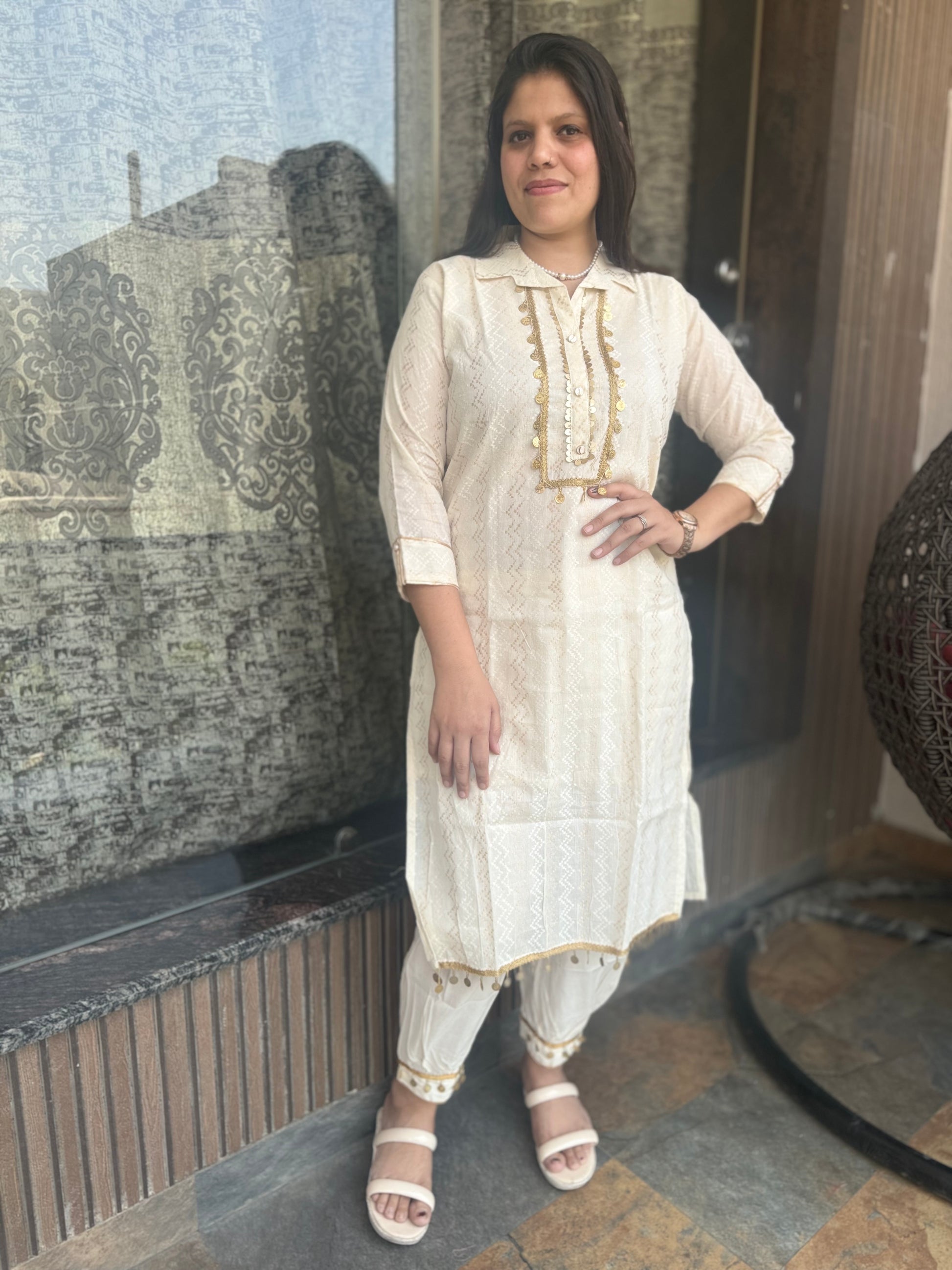 Introducing our comfortable cotton shirt and bottom set, available in sizes M to 3XL (Free Size)! The shirt length measures 43 inches and the bottom length measures 38 inches, making it ankle-length. Perfect for a cozy and stylish look.