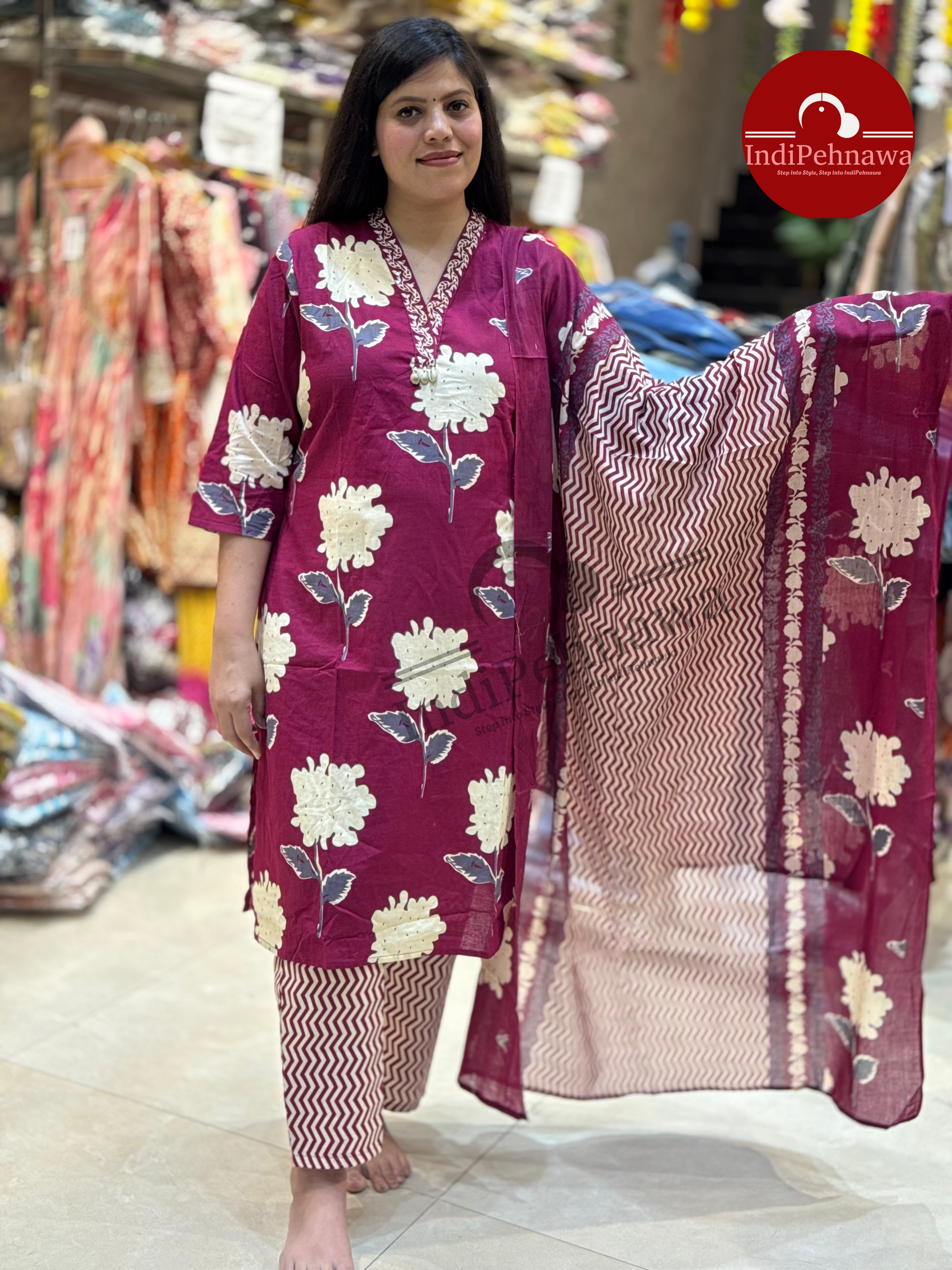 This Elegant V-Neck Designer Suit for Women is crafted from high-quality cotton fabric, ensuring comfort and breathability throughout the day. Available in sizes M to XXL, it offers a tailored fit that enhances your silhouette while maintaining ease of movement. Ideal for both formal and semi-formal occasions, this suit combines style with practicality for a refined wardrobe addition.