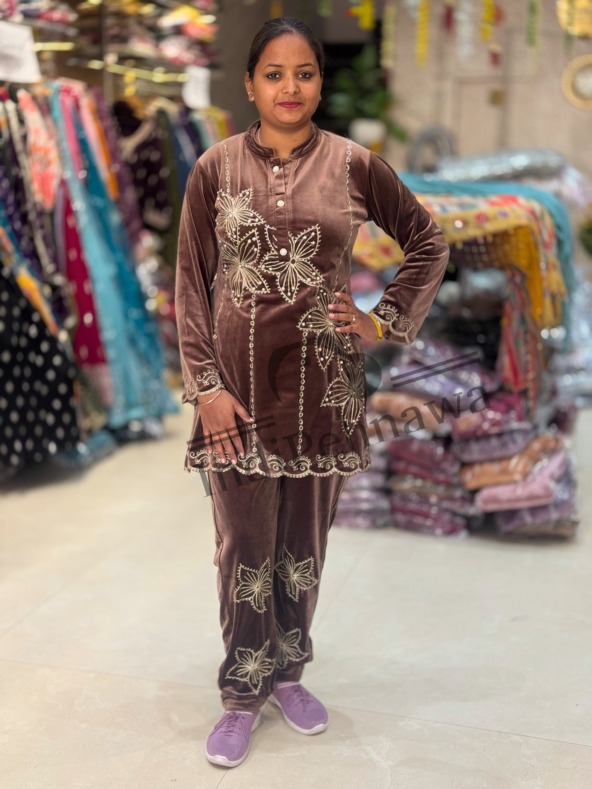 Experience timeless elegance in our Women's Co-Ord Set. Made from luxurious velvet fabric, it is adorned with intricate thread and pearl work. Available in sizes from M to XXL, this set is perfect for any occasion and will elevate your style to new levels.