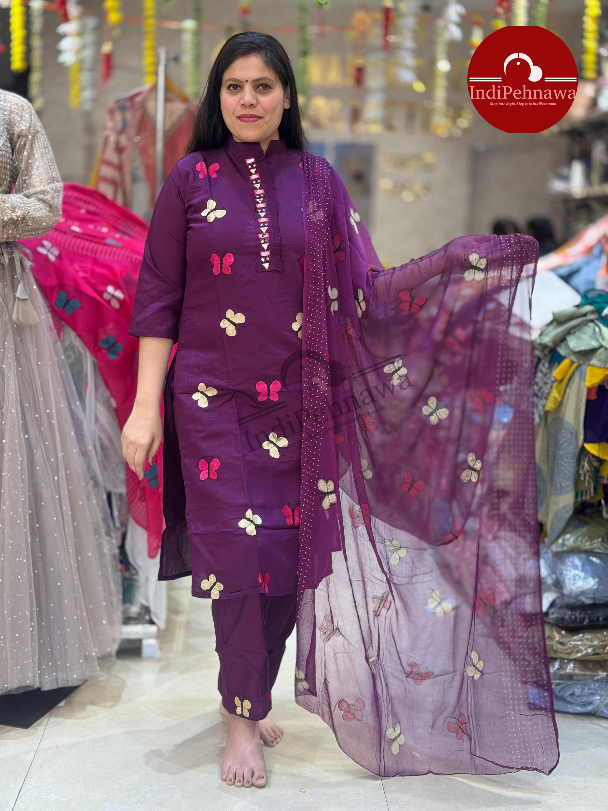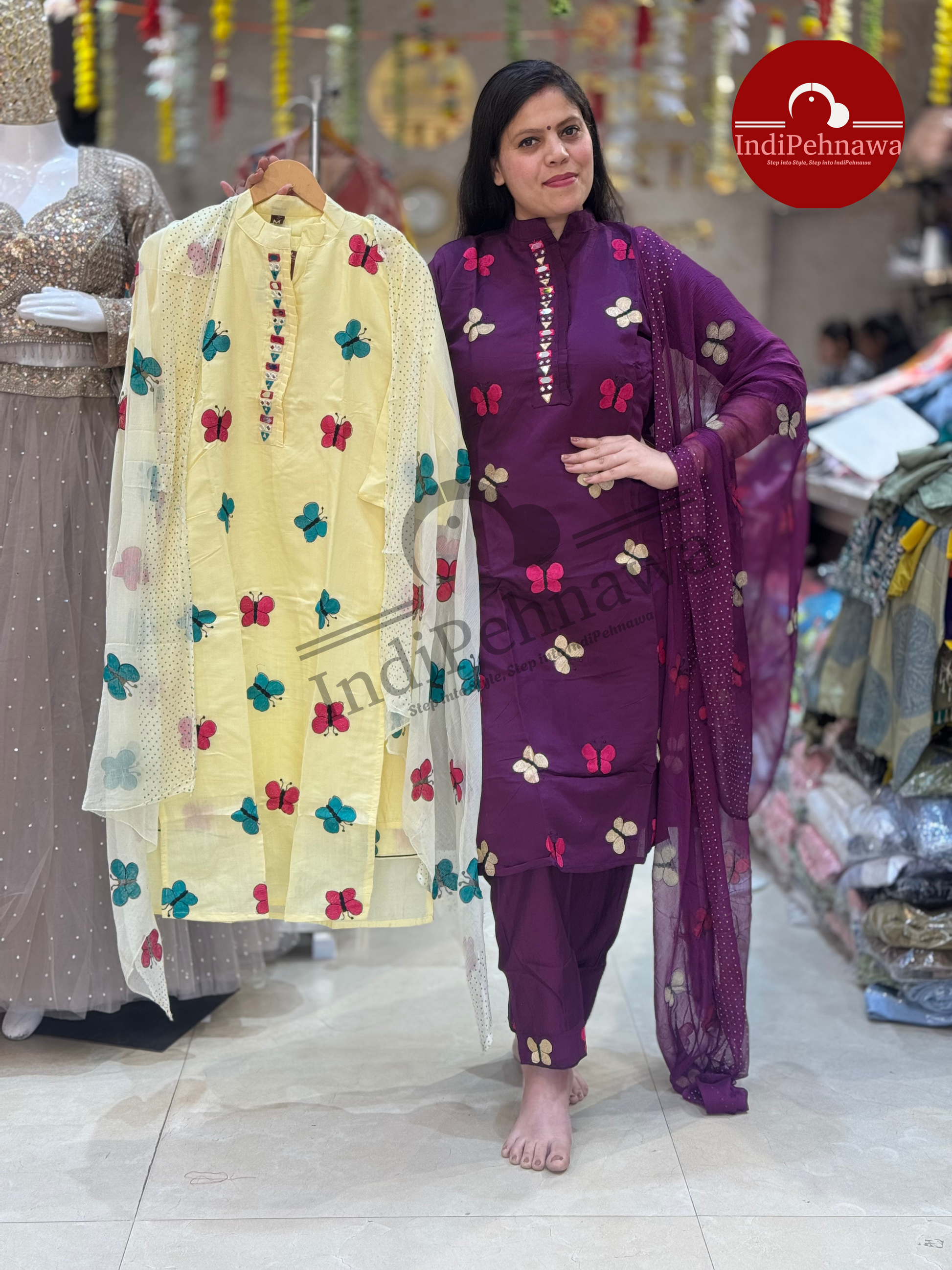 Elevate your wardrobe with our Embroided Titli Suit, meticulously crafted from premium cotton fabric for exceptional comfort and breathability. Available in sizes M to XXL, this elegant ensemble features intricate butterfly embroidery that showcases traditional craftsmanship. Perfect for both casual gatherings and special occasions.