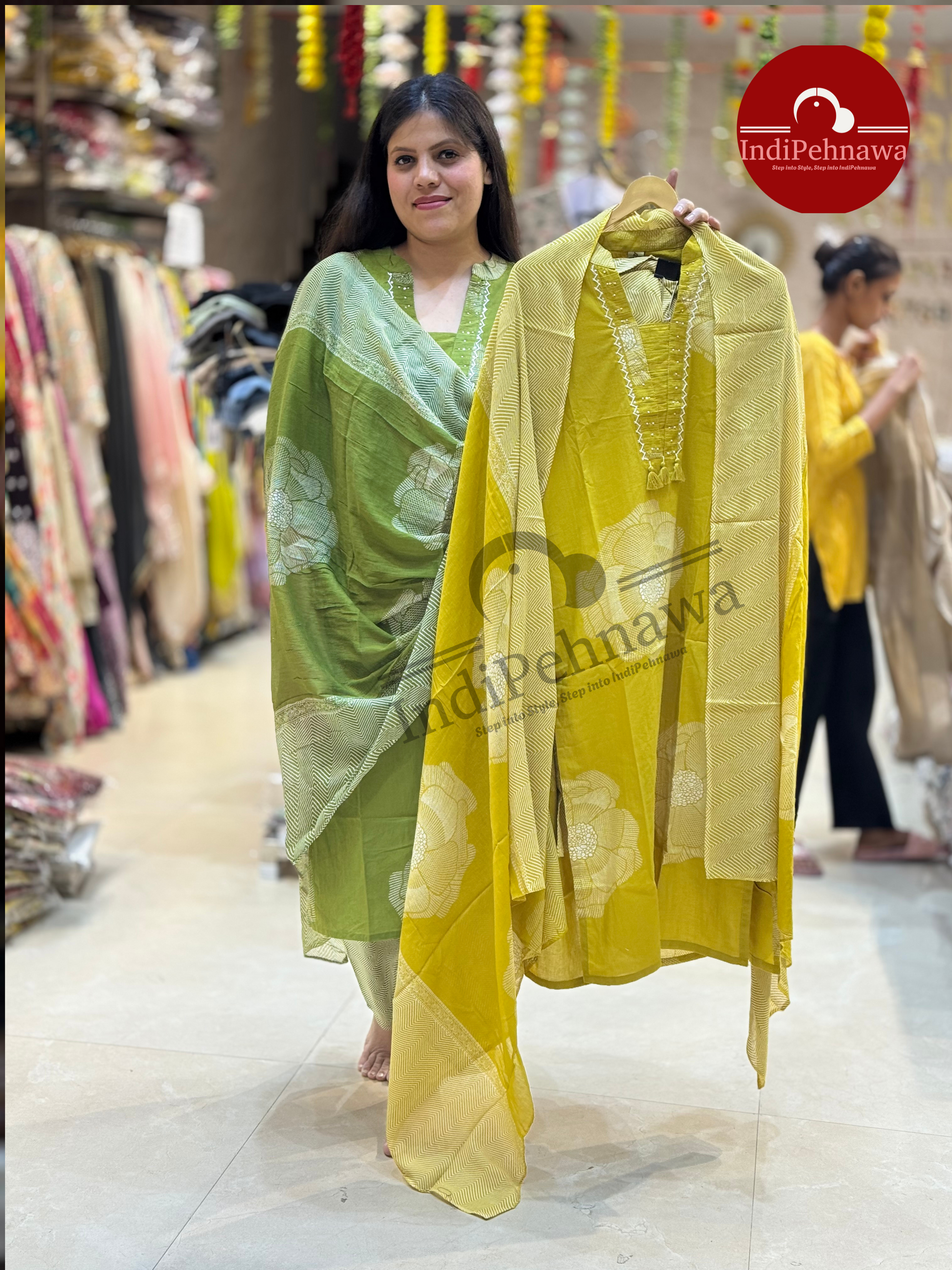 This Everyday Wear Cotton V-Neck Suit offers comfort and style with its breathable cotton fabric, ideal for daily use. Featuring a V-neck shirt adorned with delicate thread work, it adds subtle elegance to your look. The printed bottom and dupatta complement the design, creating a coordinated ensemble. Available in sizes M to 3XL, this suit ensures a perfect fit for various body types, combining traditional craftsmanship with everyday practicality.
