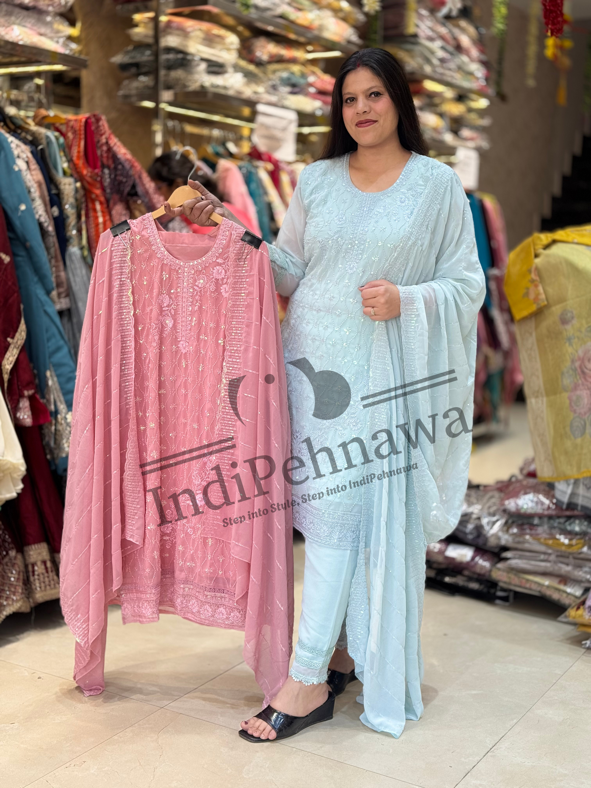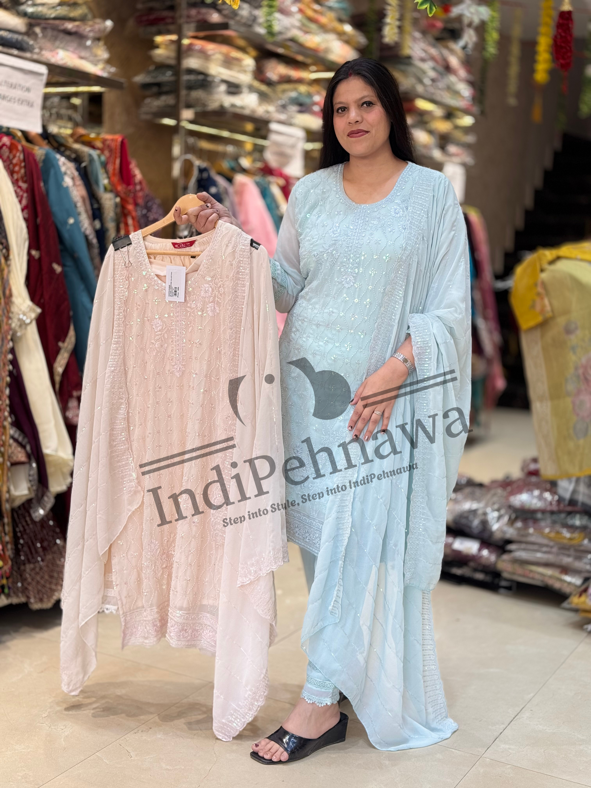 Exquisite Full Thread Work Chiffon Georgette Suits – Indipehnawa
