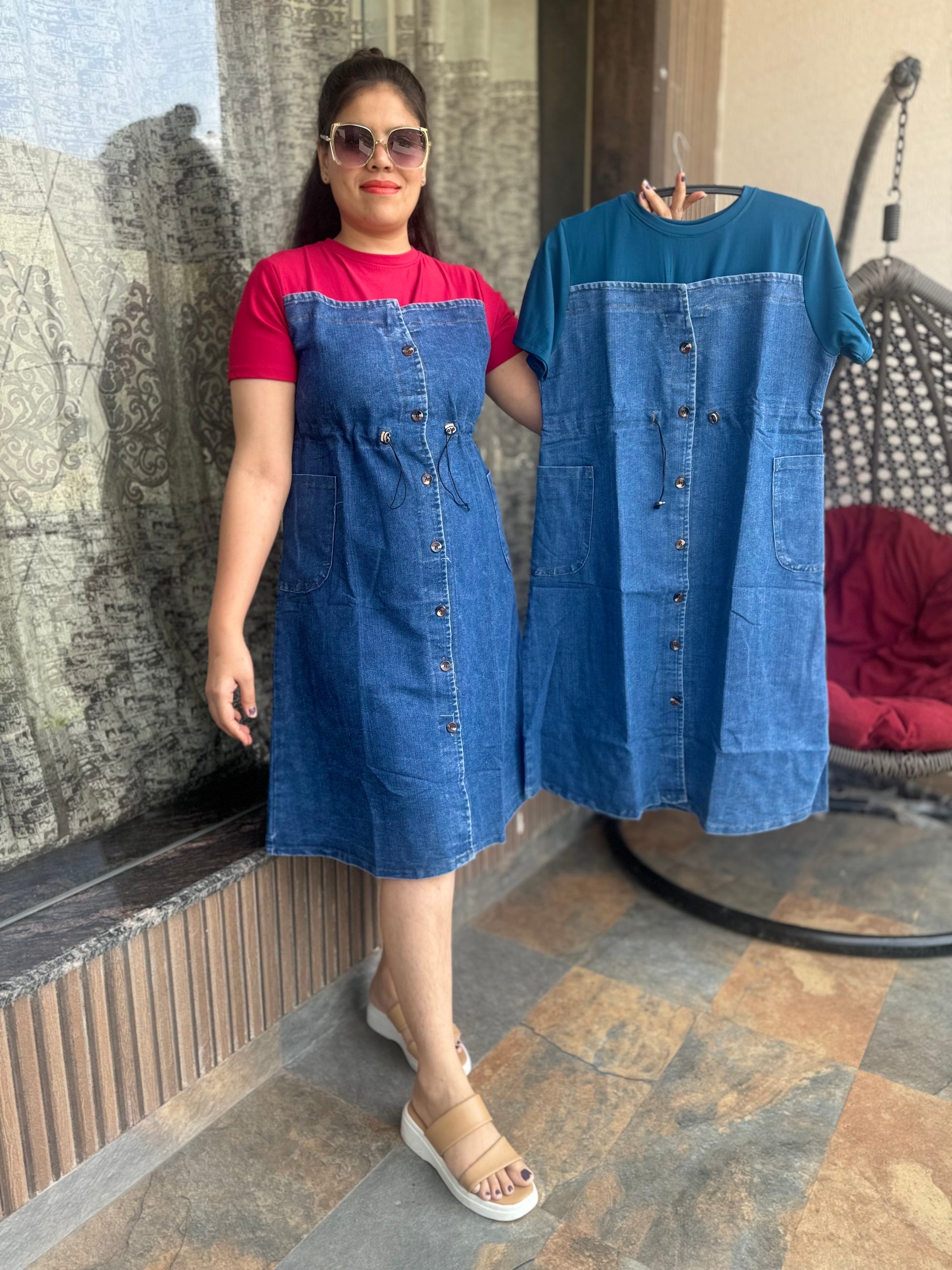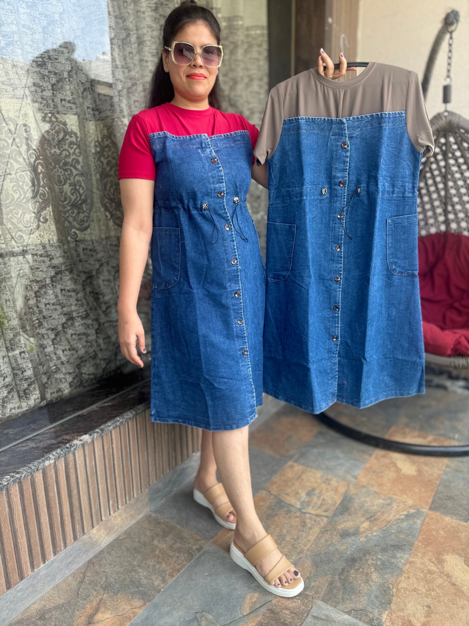 Simplicity meets style with our Fashionable Western Denim Dress. Made with durable denim and available in sizes M to XL, this free size dress is perfect for any body type. With a dress length of 41 inches, you'll rock a casual yet fashionable look effortlessly.