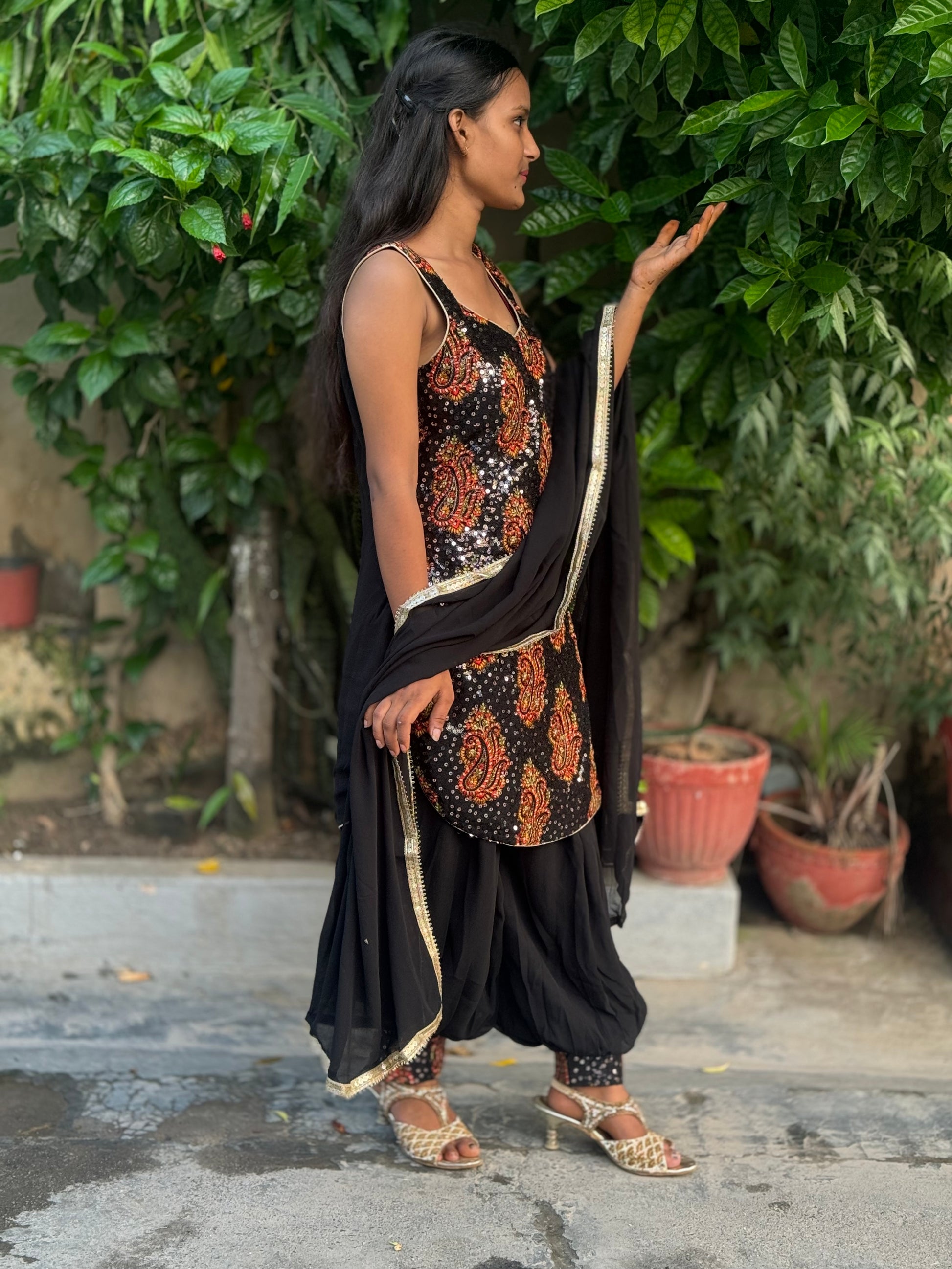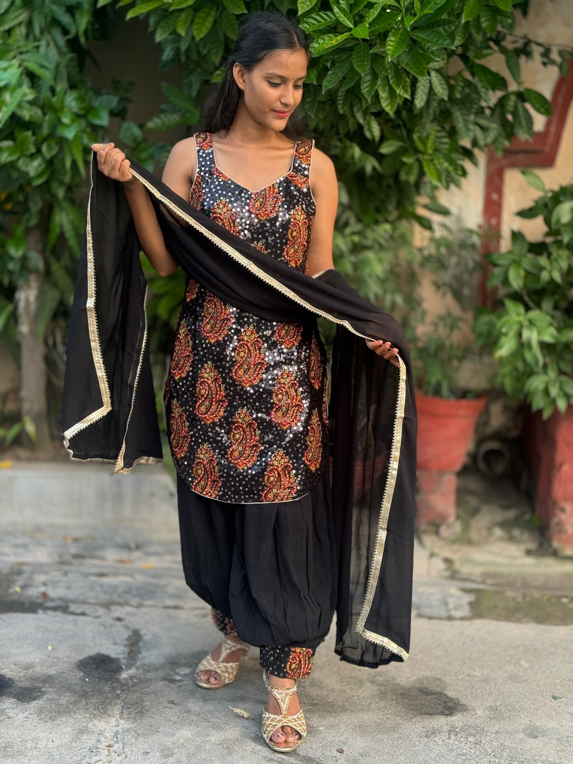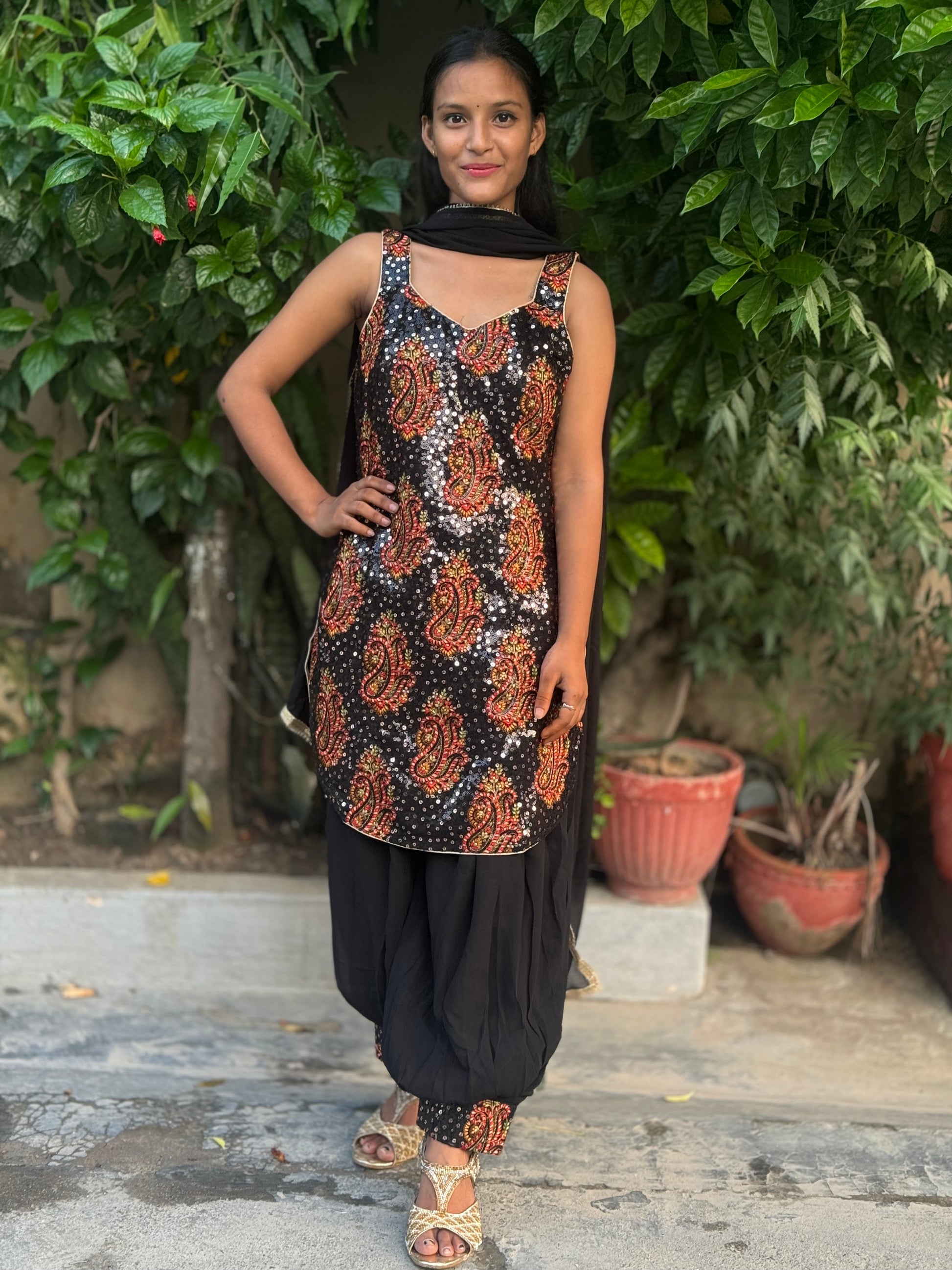 FOUX GEORGETTE MULTI COLOUR EMBROIDERED PATHANI SUIT
