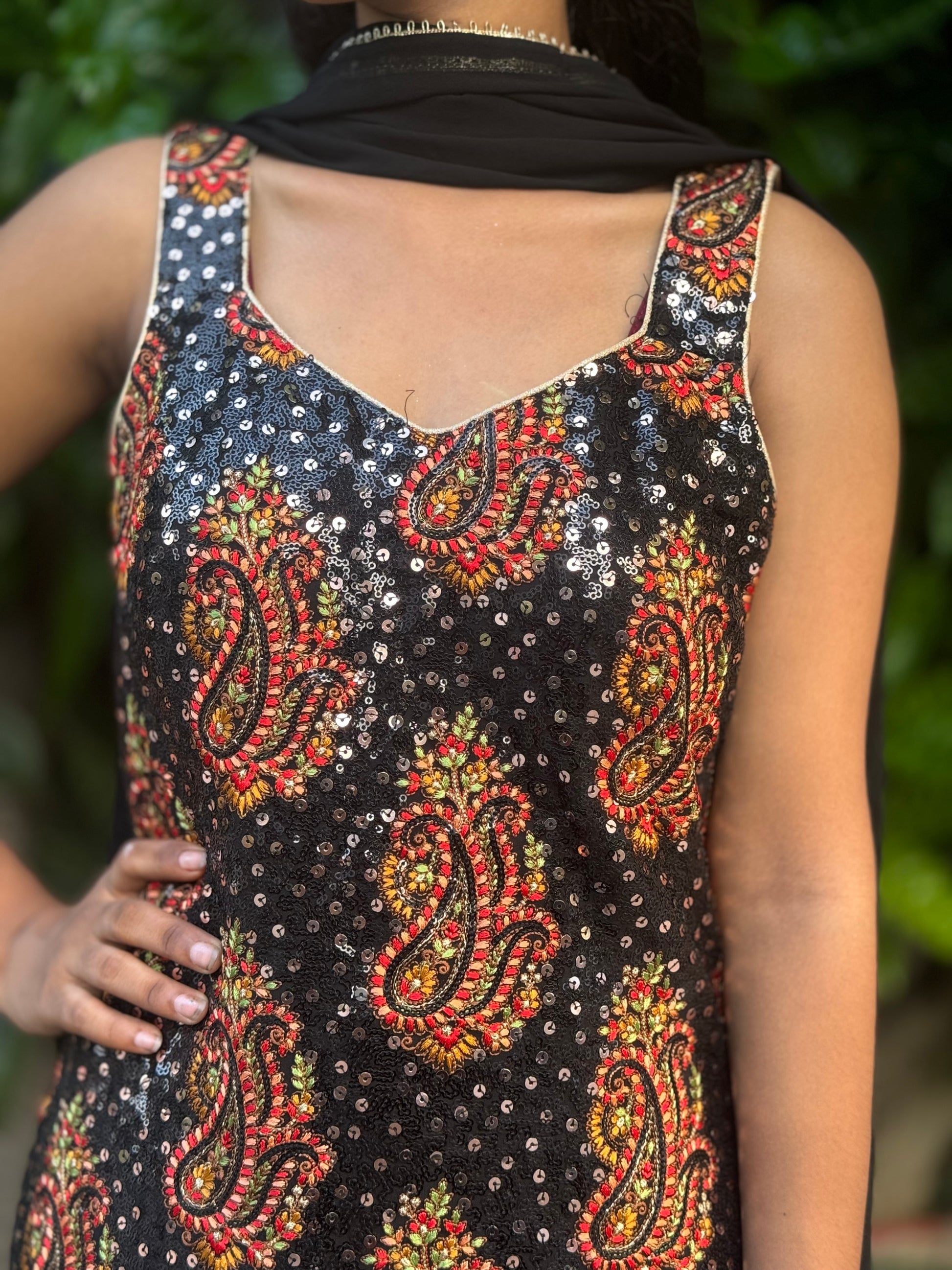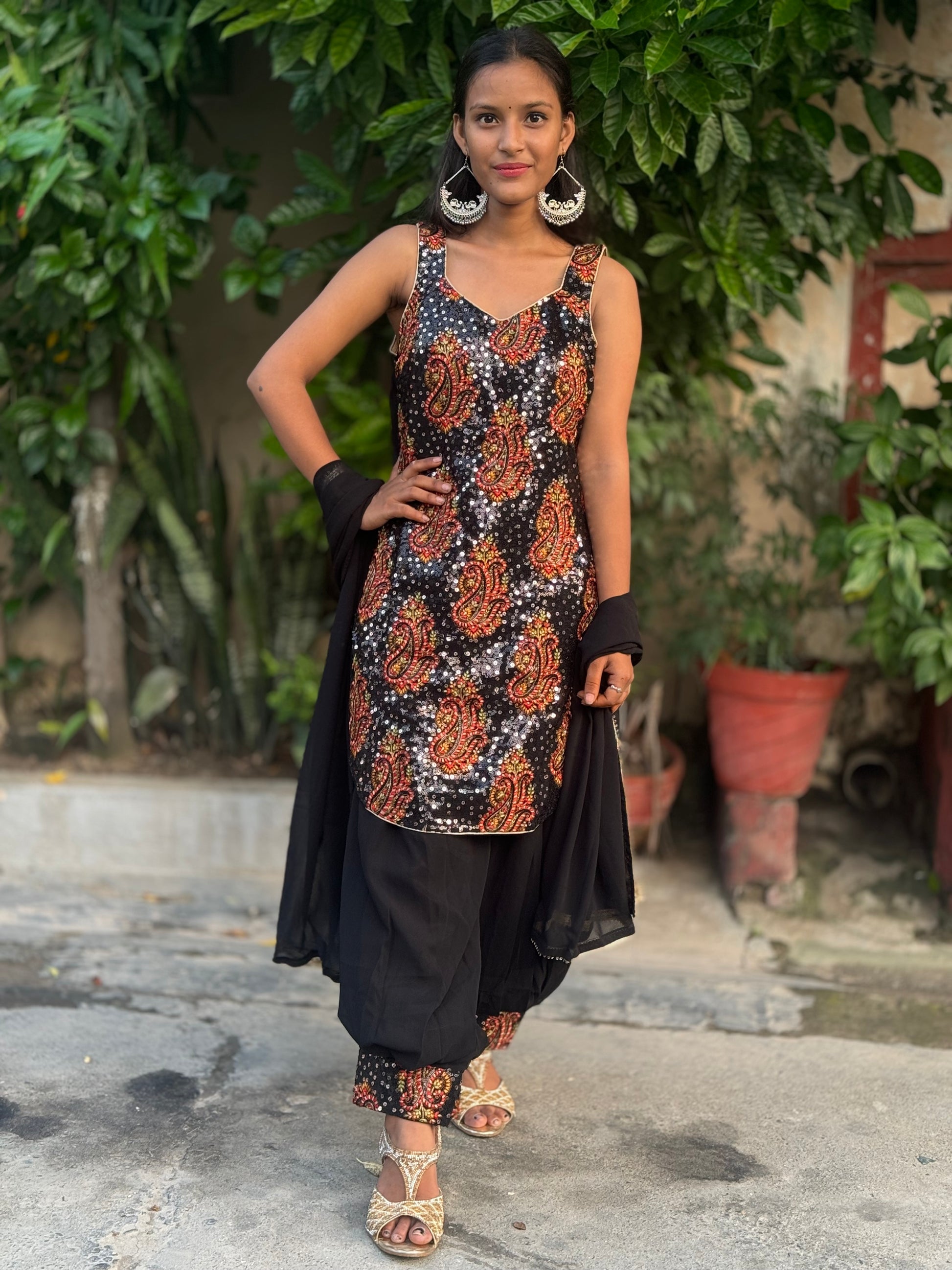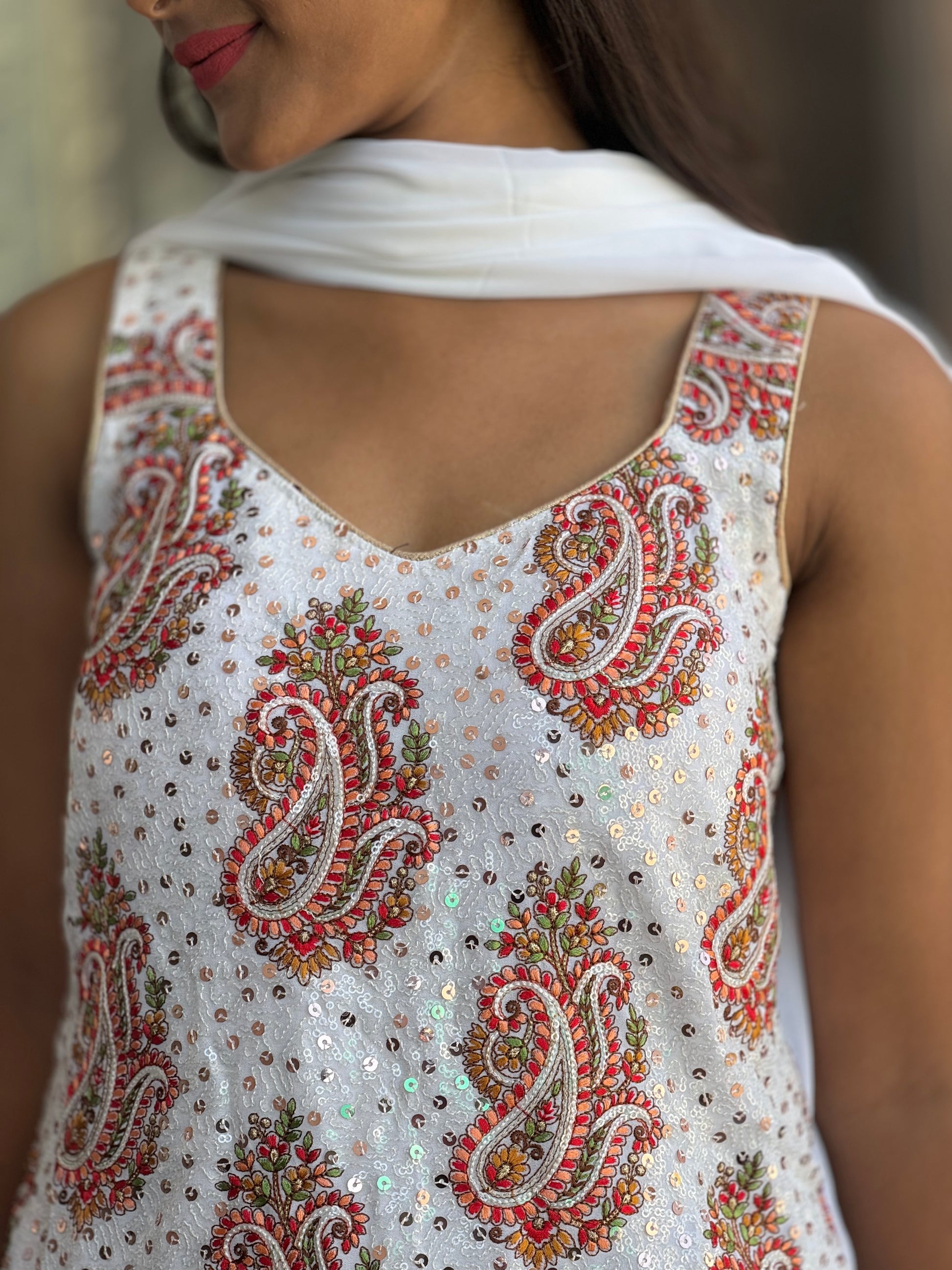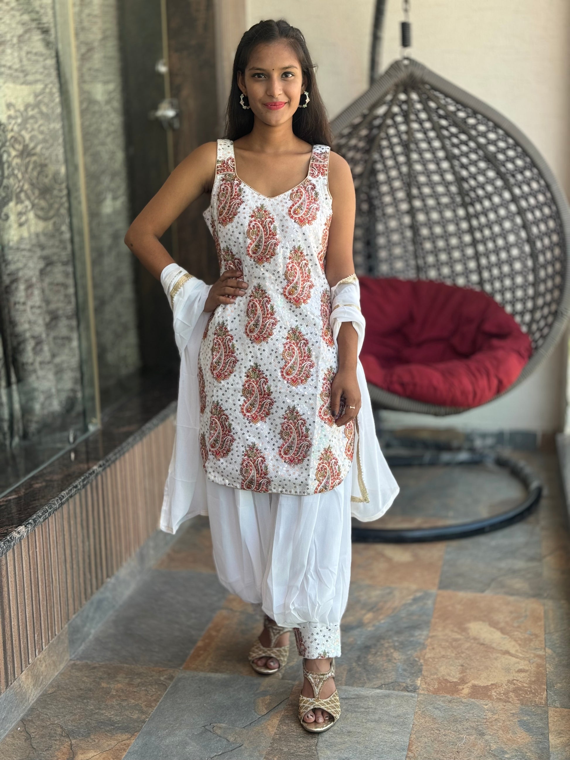 FOUX GEORGETTE MULTI COLOUR EMBROIDERED PATHANI SUIT