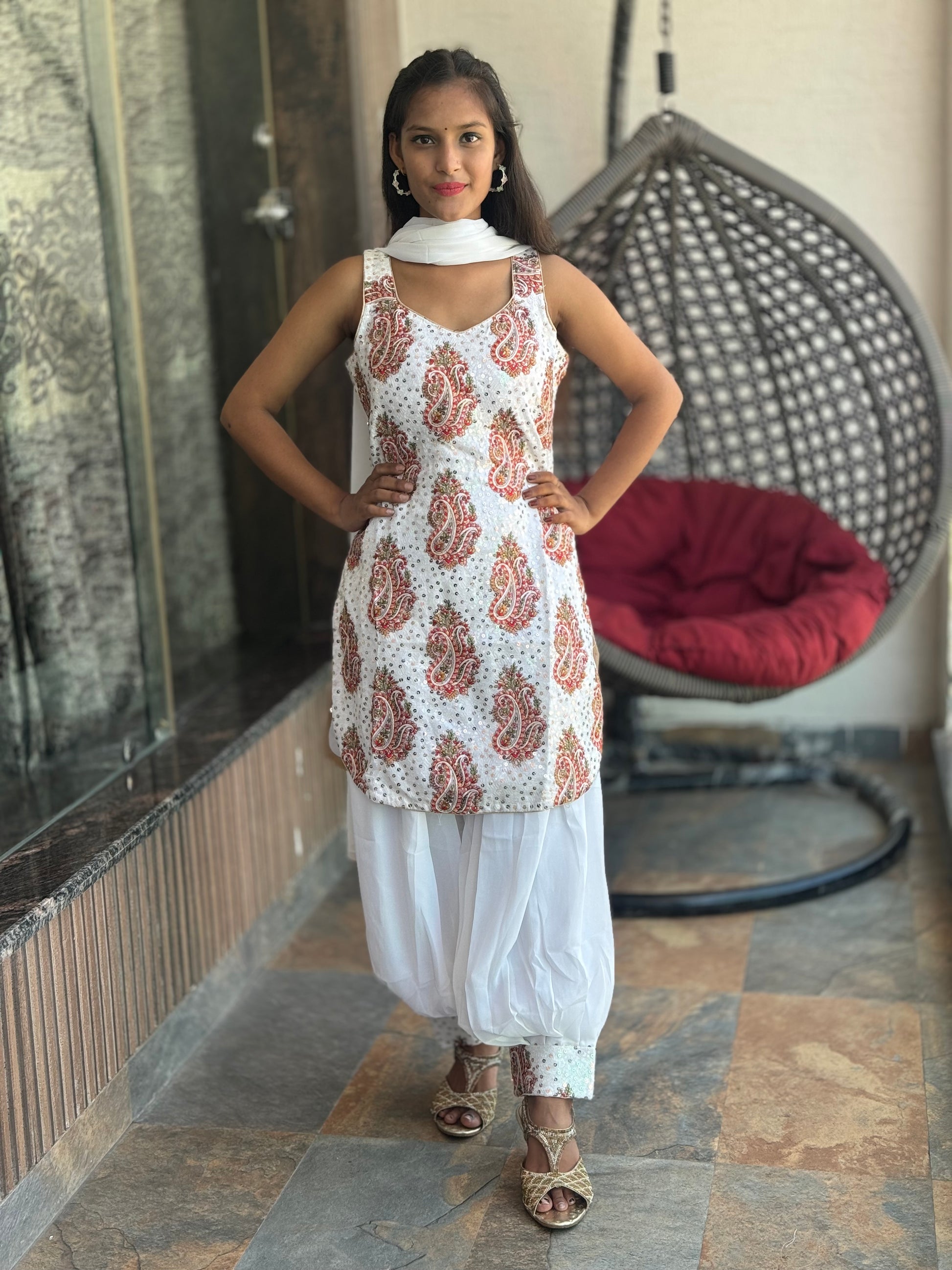 This pathani suit features a beautiful multi-coloured embroidery on the georgette shirt, adding a touch of elegance to the outfit. With a size range of S to XL, simply alter the shirt to achieve a perfect fit. The shirt measures 34 inches in length and is accompanied by a 40 inch bottom.