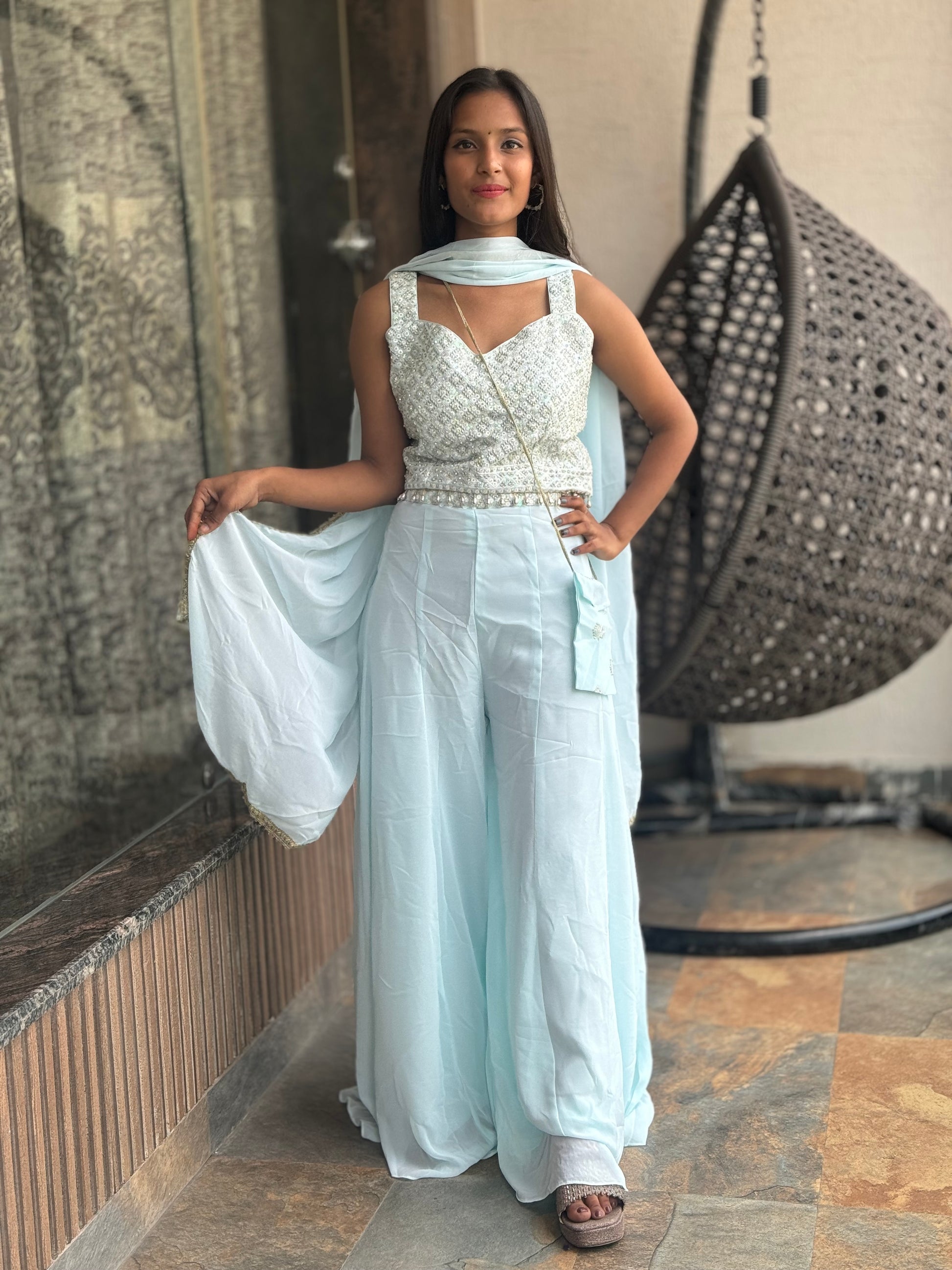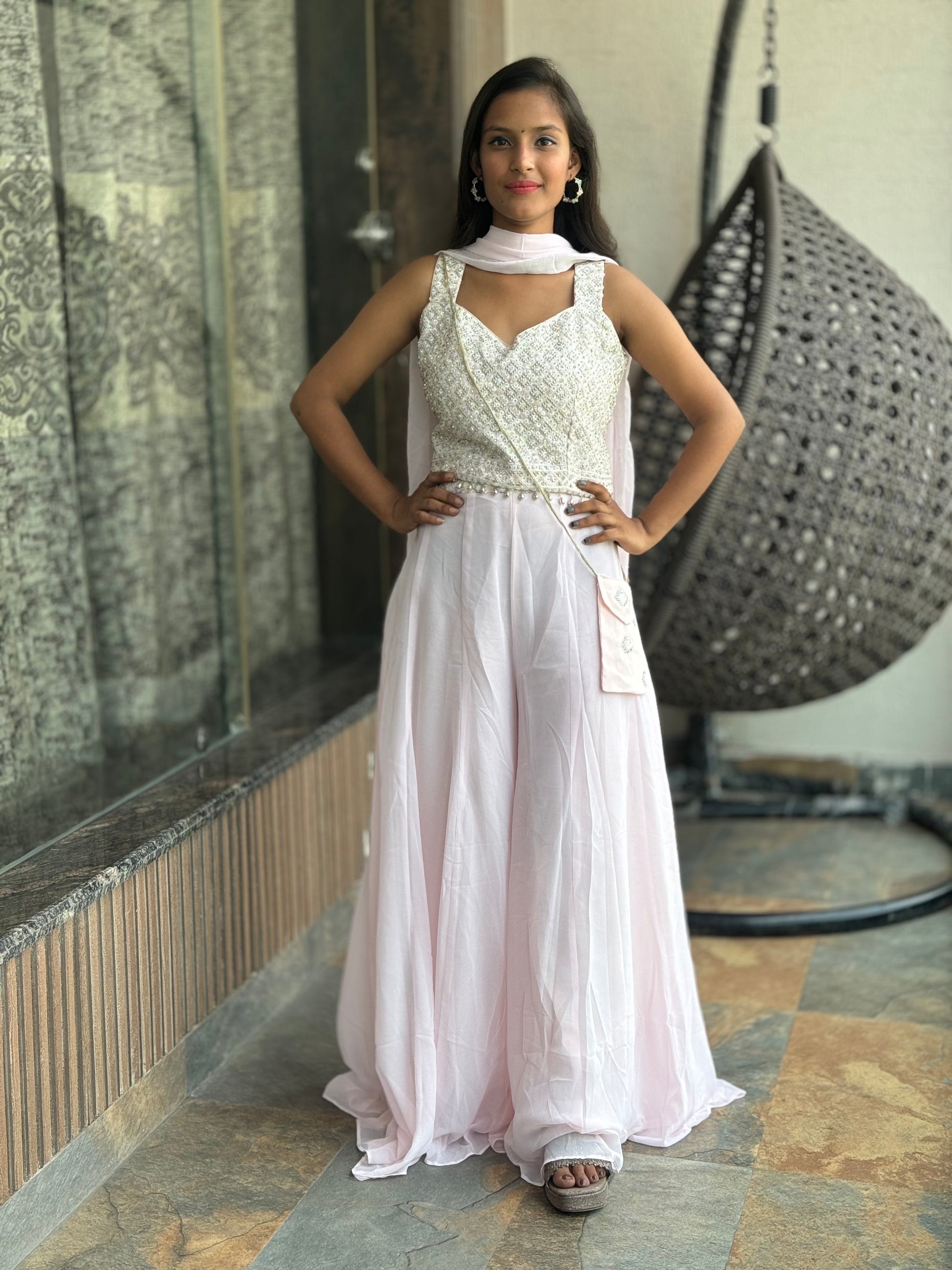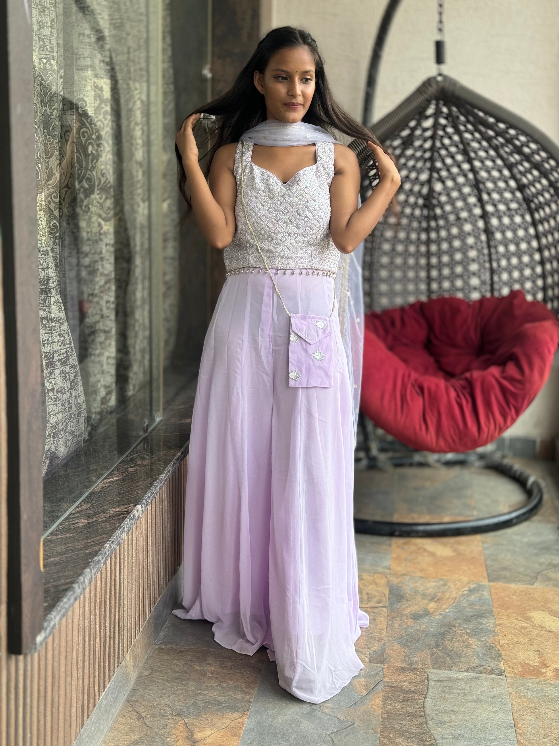The GEORGETTE LILAC DIVIDER offers a stylish and versatile option for any wardrobe. Made of high-quality GEORGETTE fabric, this divider features a convenient lining and adjustable sizing for a perfect fit. With a top length of 15 and bottom length of 44, it's the ideal choice for sizes M to XXL.