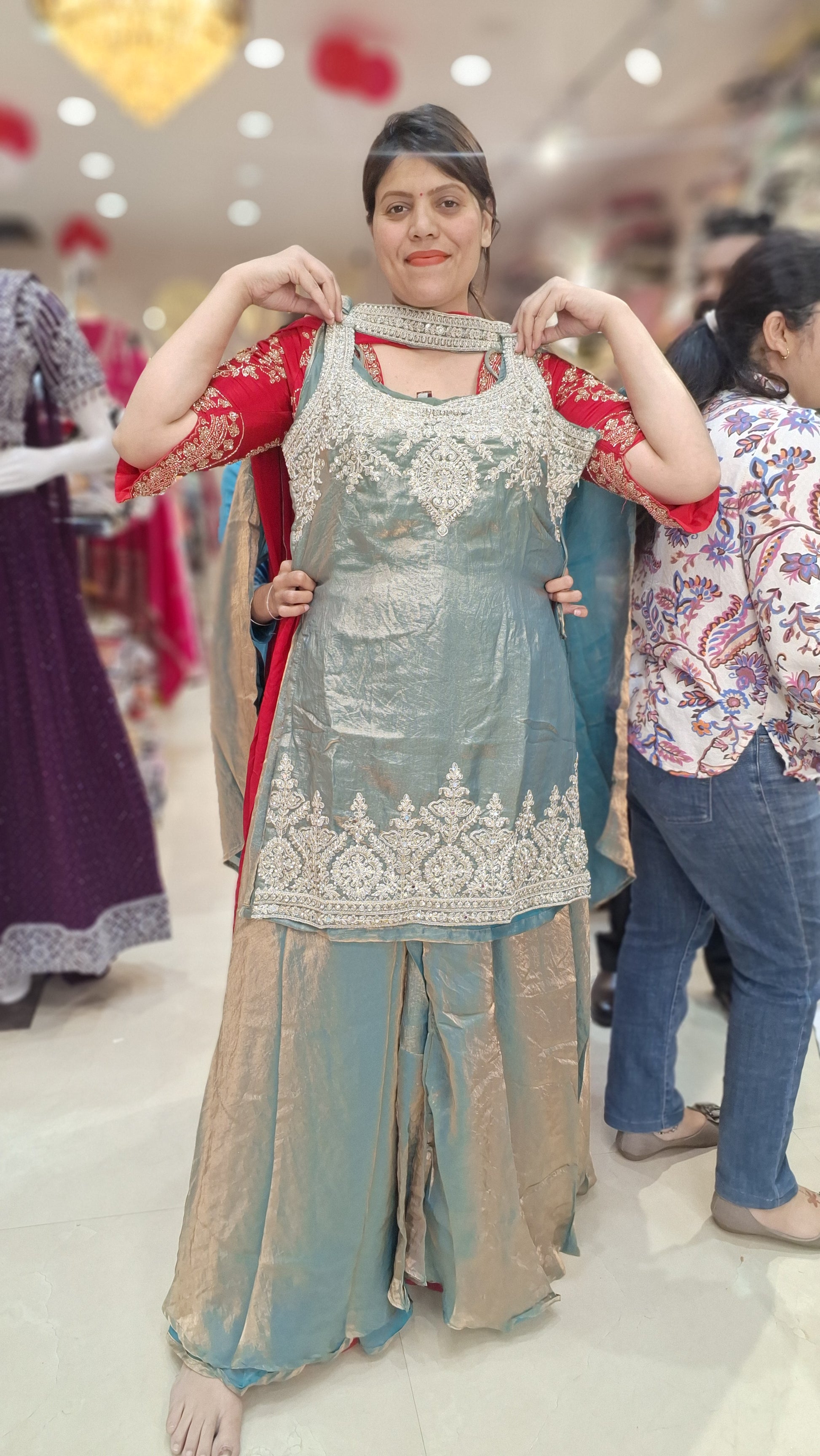 GLASS TISSUE SILVER TILLA WORK WITH JAFFA