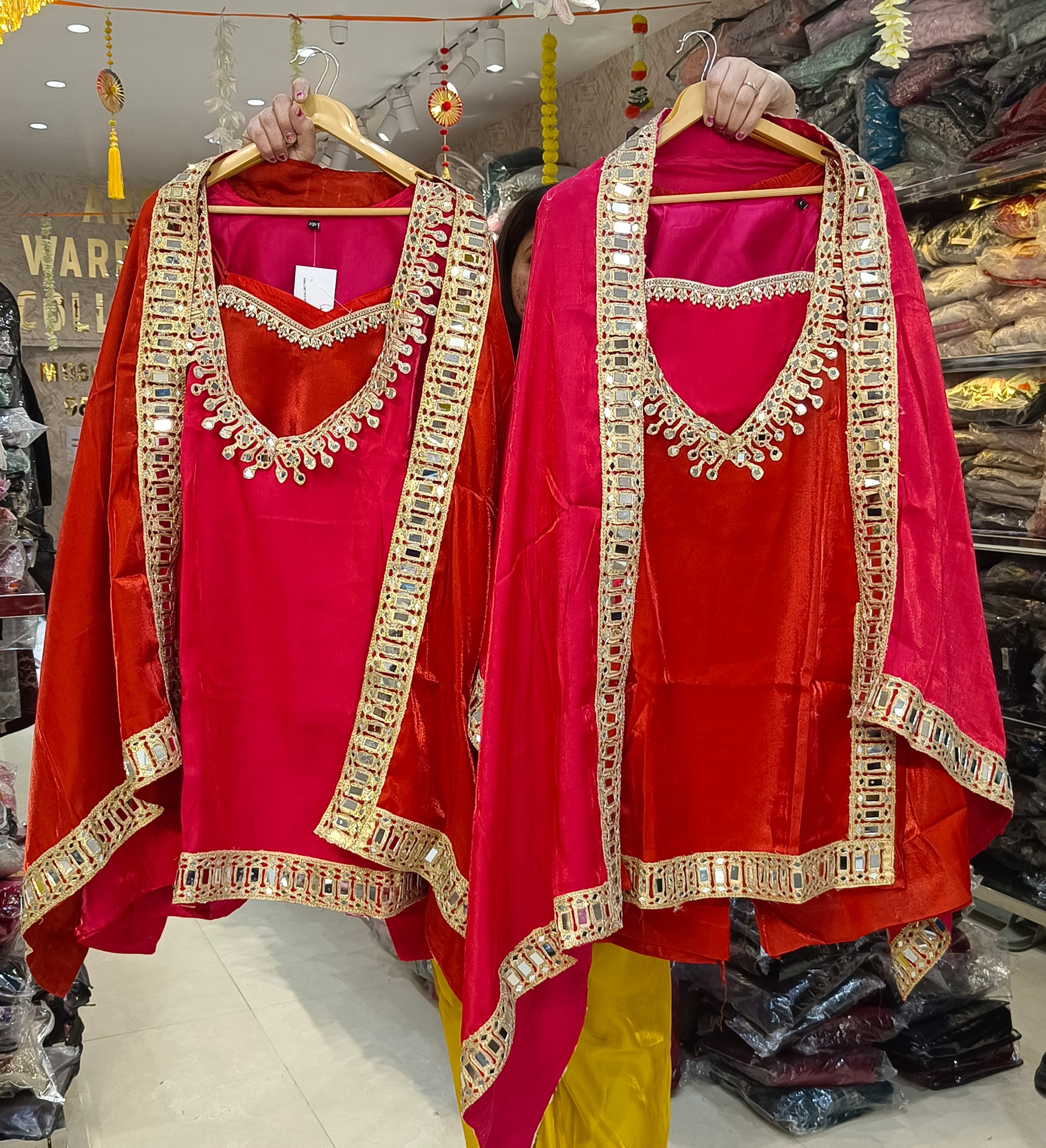 GLASS TISSUE WITH ORIGNAL MIRROR WORK BUSTIER SUIT