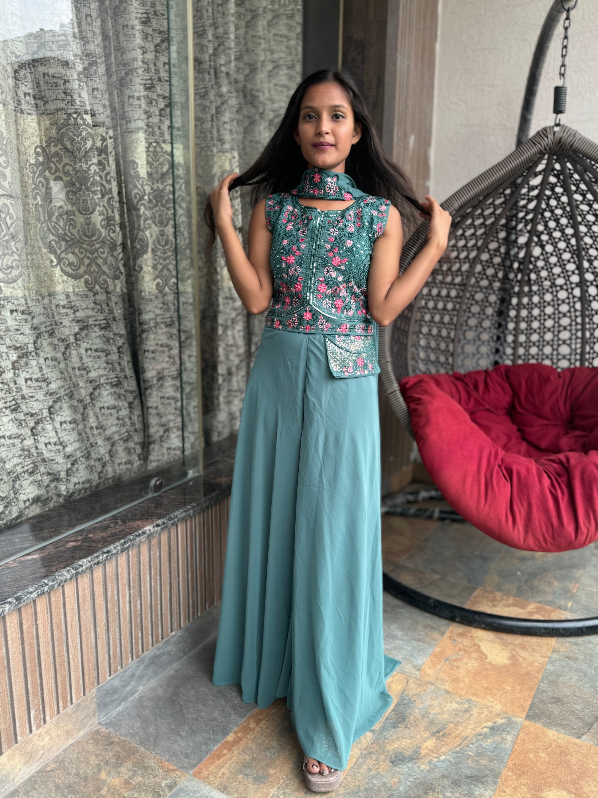 GREEN EMBROIDERY HEAVY GEORGETTE DIVIDER