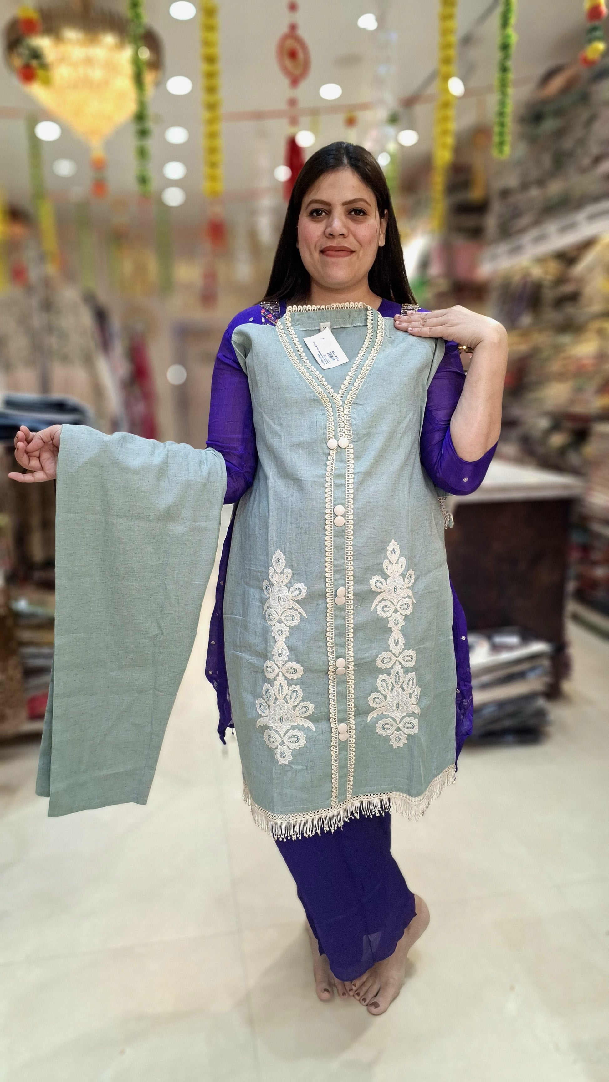 GREY PURE COTTON WHITE THREAD WORK CORDSET