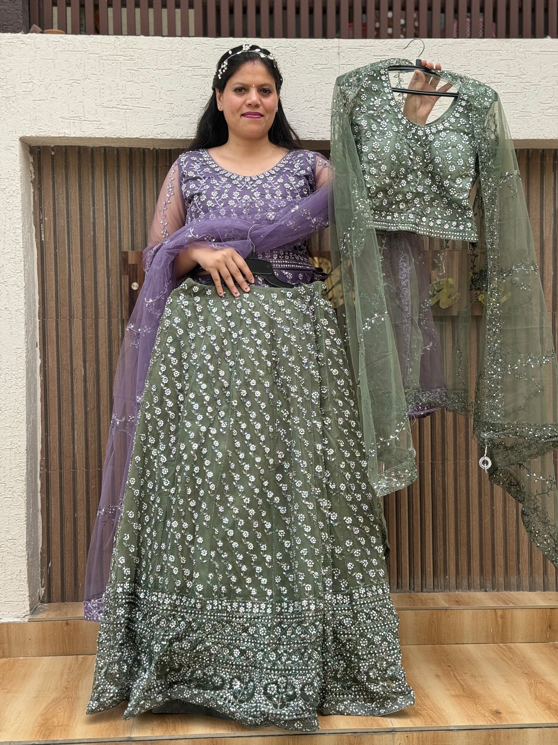 Get ready to dazzle in our Heavy Wedding Special Lehnga! Available in sizes M to XXXL (just need to alter the choli), this stunning piece features intricate mirror and thread work on the lehnga and choli, as well as a full heavy net dupatta. With a can-can attached, the top length is 17 inches and bottom length is 41 inches. Perfect for making a statement at any occasion.