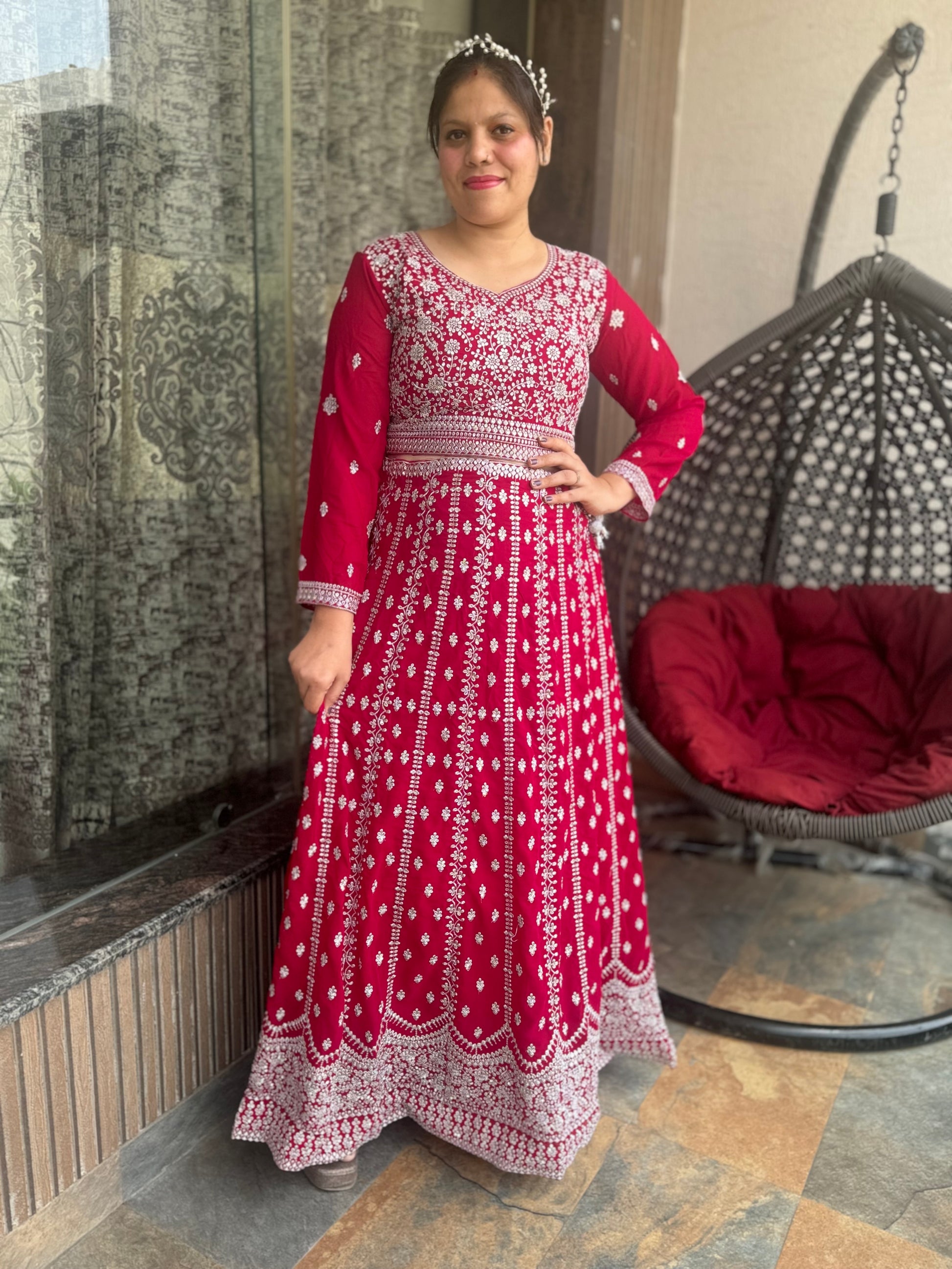 Introducing our stylish and versatile Hot Pink Lehnga (Style No 1001). Made with high-quality georgette fabric, this lehnga comes in sizes M to XXL and can be easily altered to ensure a perfect fit. The blouse length is 16 inches and the lehnga length is 45 inches for a flattering, elegant look. Upgrade your wardrobe and turn heads with this beautiful lehnga.