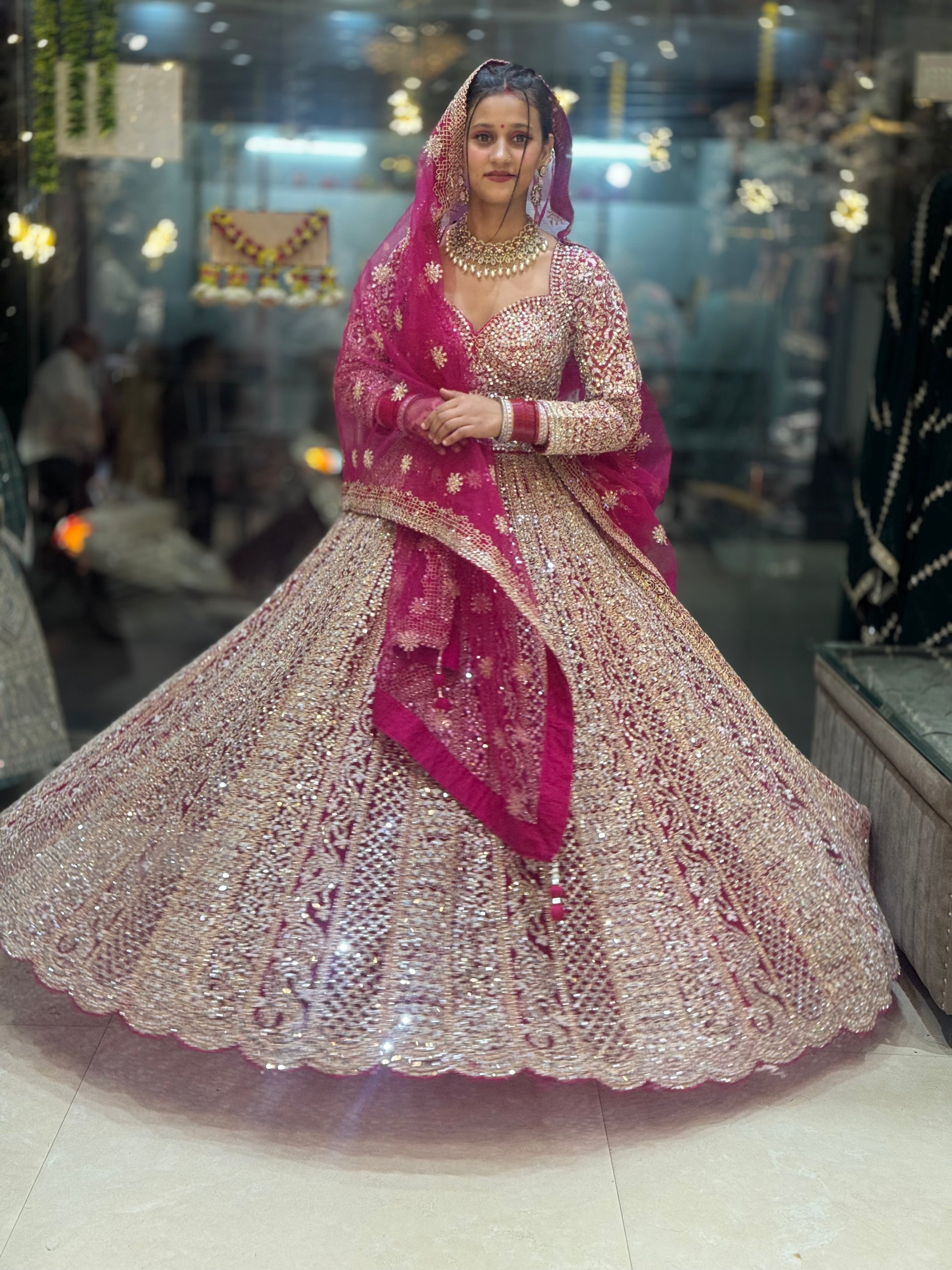 HOT PINK ORIGNAL MIRROR WORK FULL FLAIR LEHNGA