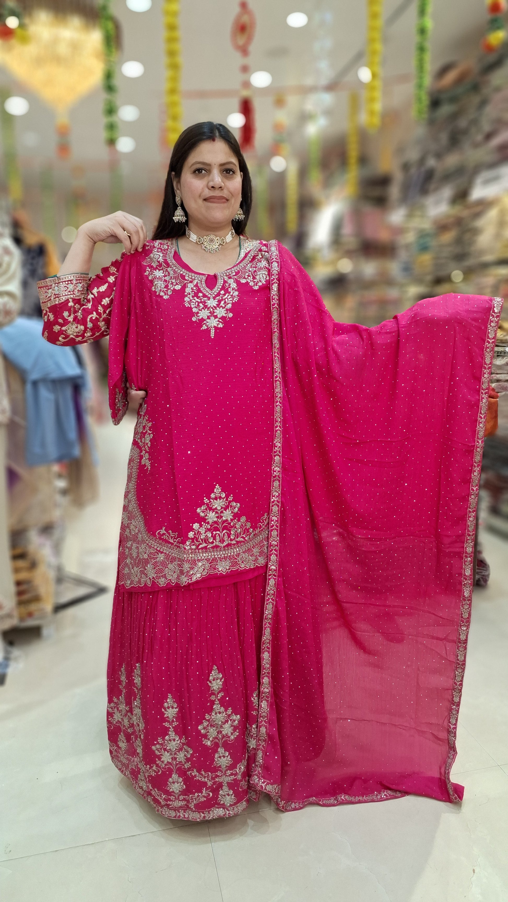 HOT PURE CHINON GOLDEN TILLA WORK HEAVT DUPPTA WITH LEHNGA SUIT