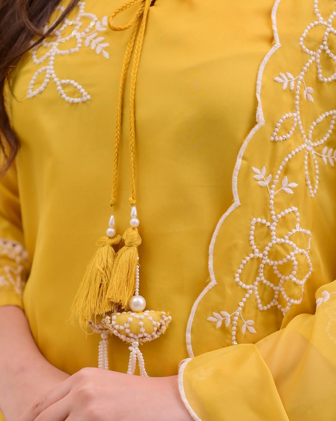 Indian Organza Suit Yellow And Hot Pink With Tassels (P6AL0003)
