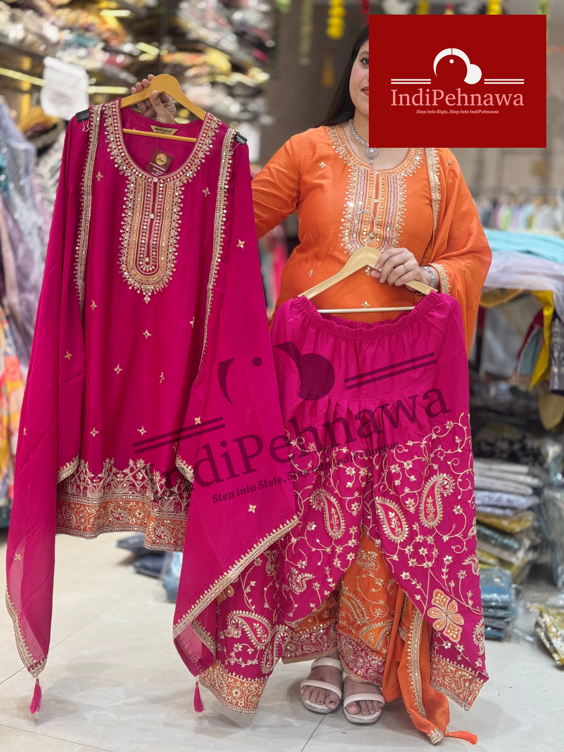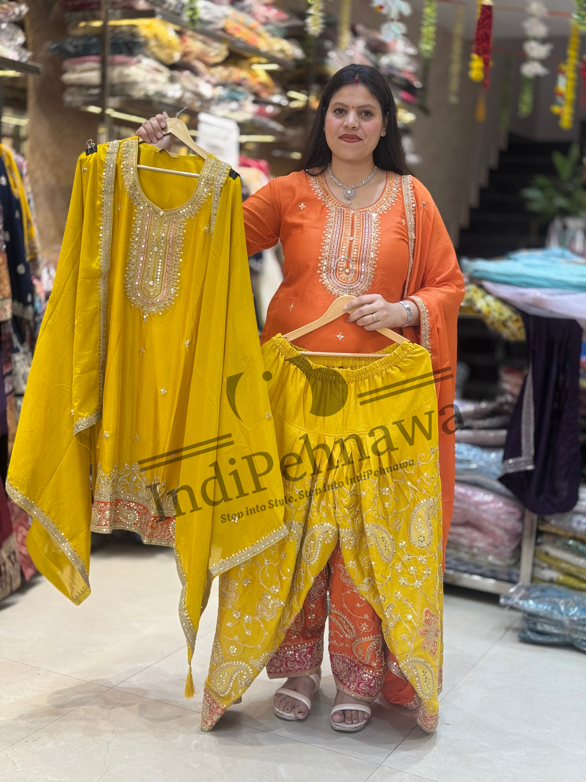 INDIPEHNAWA Graceful Tilla Embroidered Chinon Pathani Suit – Perfect for Celebrations