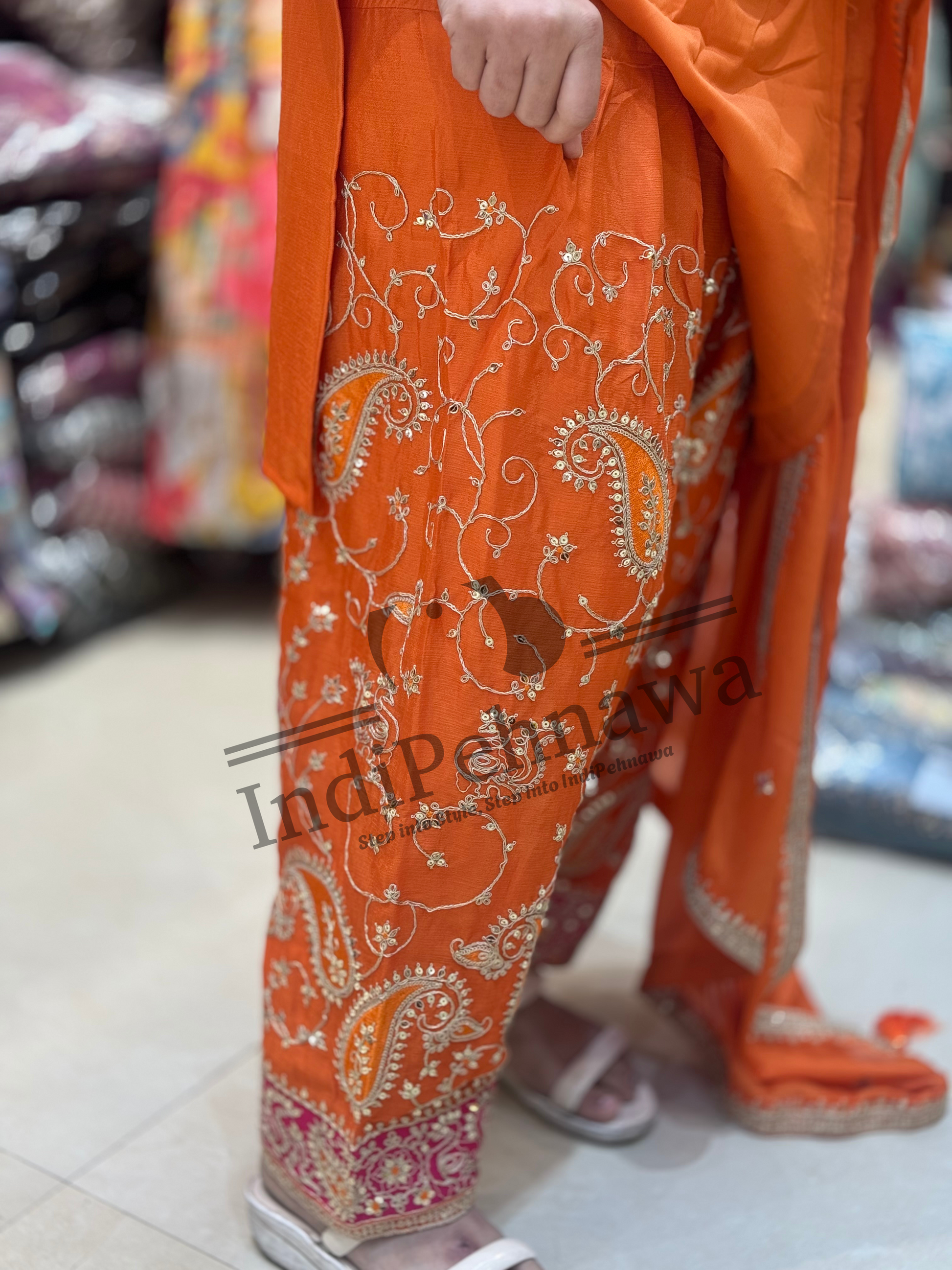 This INDIPEHNAWA Graceful Tilla Embroidered Chinon Pathani Suit is a must-have for any celebration. Made with high-quality CHINON fabric, it features elegant full tilla and hand embroidery work on the shirt, salwar, and duppata. Available in M to 4XL size and with a full size duppata, this suit is perfect for adding a touch of grace and sophistication to your ensemble.