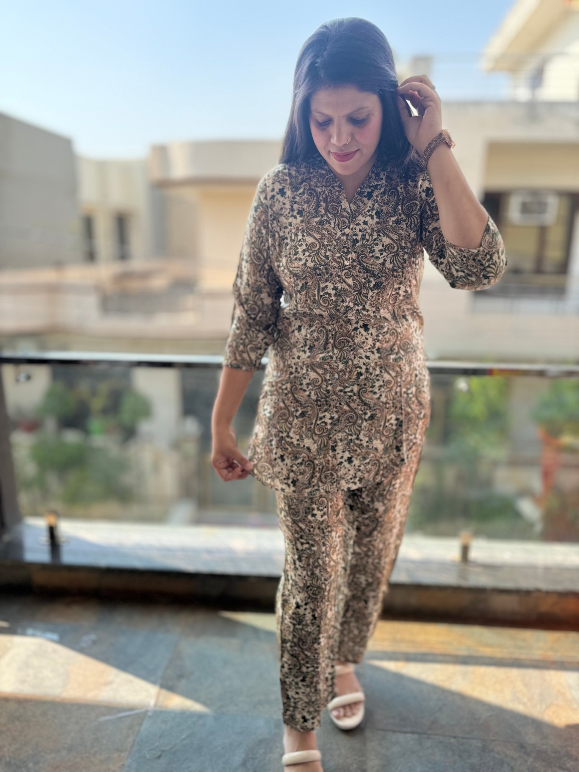 This IndiPehnawa JAIPURI Cordset features high-quality Reyon Cotton material, providing comfort and breathability. Available in sizes S to XXL, with a shirt length of 31 and a bottom length of 40, ensuring a perfect fit for all body types. Elevate your style with this versatile and fashionable cordset.
