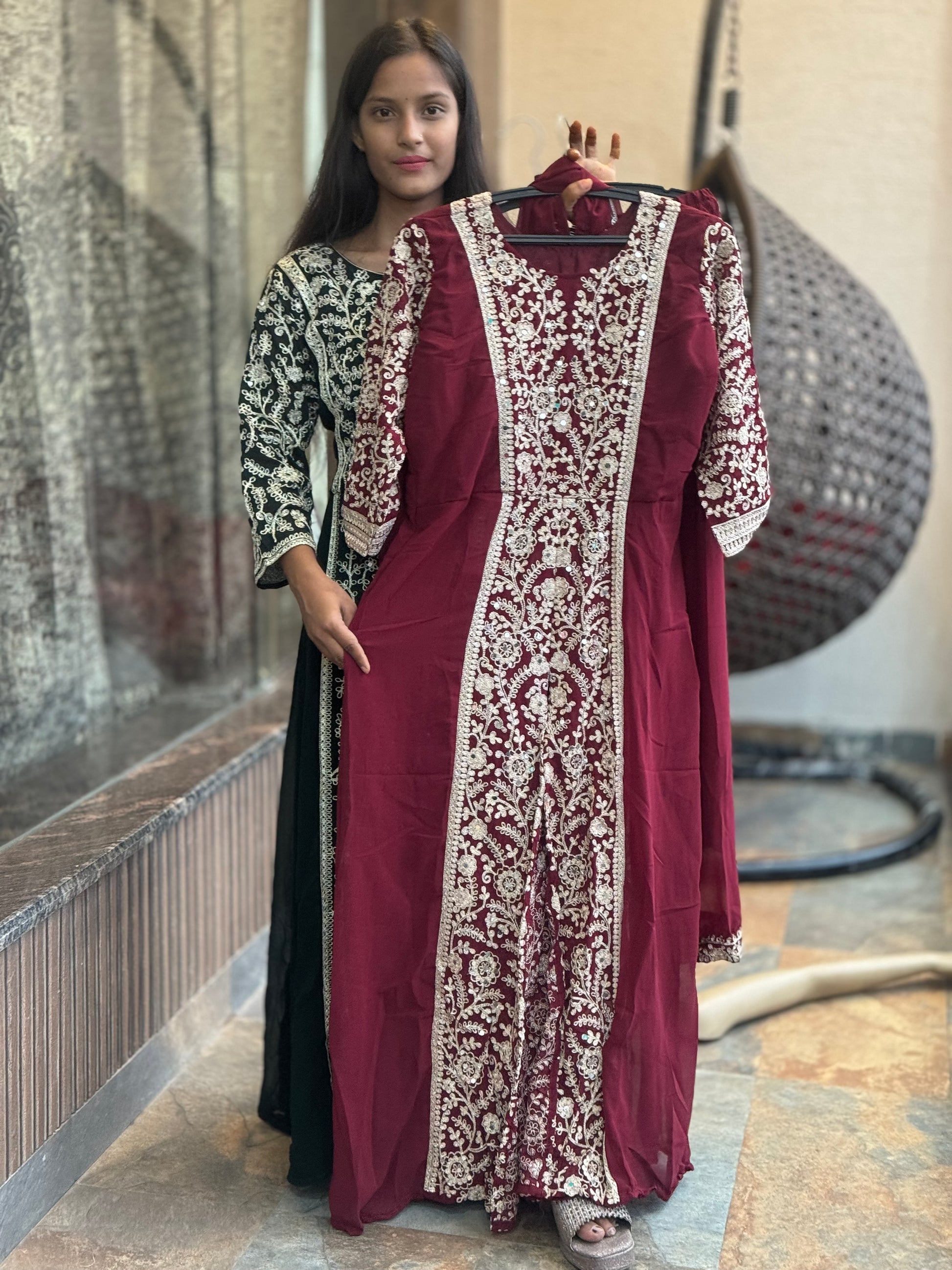 Upgrade your wardrobe with our INDIPEHNAWA MASTANI SUIT WITH PLAZO. Made with high-quality georgette fabric, this suit features a full front and back mirror work that will make you stand out. With a shirt length of 52 inches and a bottom length of 41 inches, this suit is available in sizes M to XL (shirt may need alterations). Lined plazo adds a touch of elegance to this traditional ensemble.