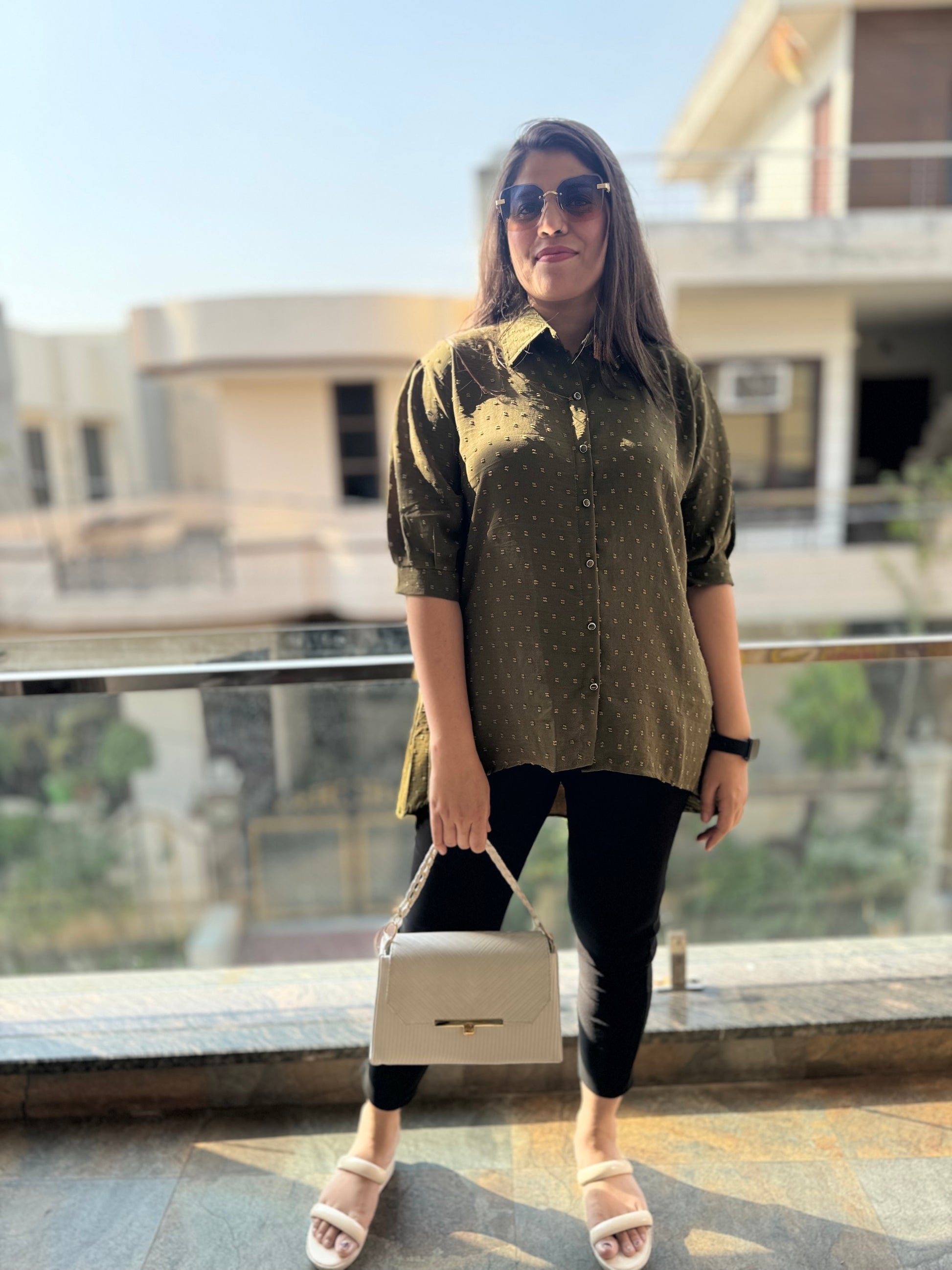 This IndiPehnawa Shifli Up & Down Style Shirt offers a breathable and stylish look. Made from high-quality georgette material, it comes in a range of sizes from M to 4xl, providing a comfortable and flattering fit for all body types. With its versatile front side length of 28 and back length of 33, this shirt can easily transition from day to night.