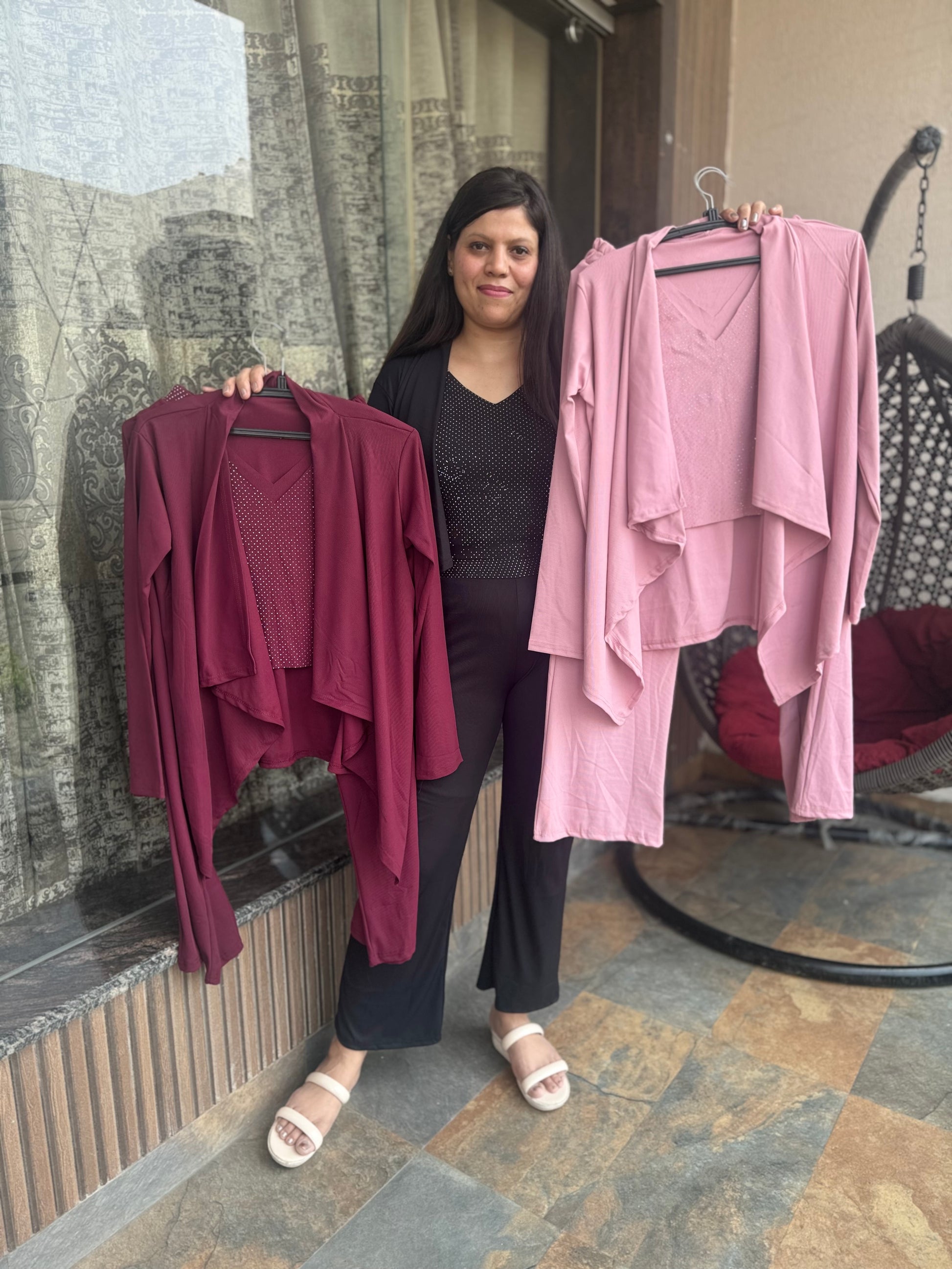 Wrap yourself in comfort and style with our Cotrize Cotton set. Made with breathable fabric, it comes in sizes S to 3XL (Free Size) for the perfect fit. The top measures 18 inches and the shrug 30 inches, while the bottom is 40 inches, providing all-day comfort and coverage.