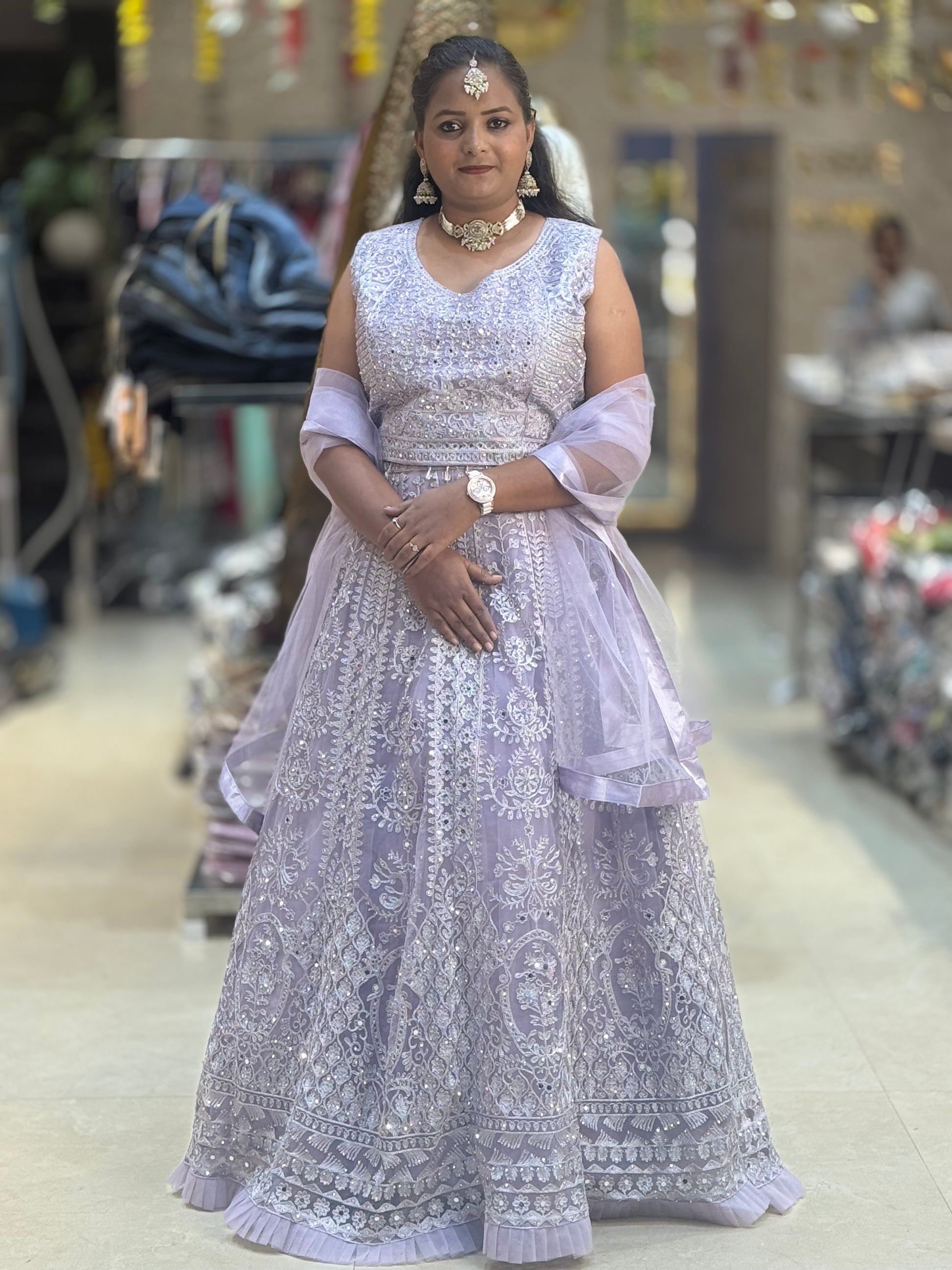 LILAC NITED THREAD AND MIRROR WORK HEAVY LEHNGA
