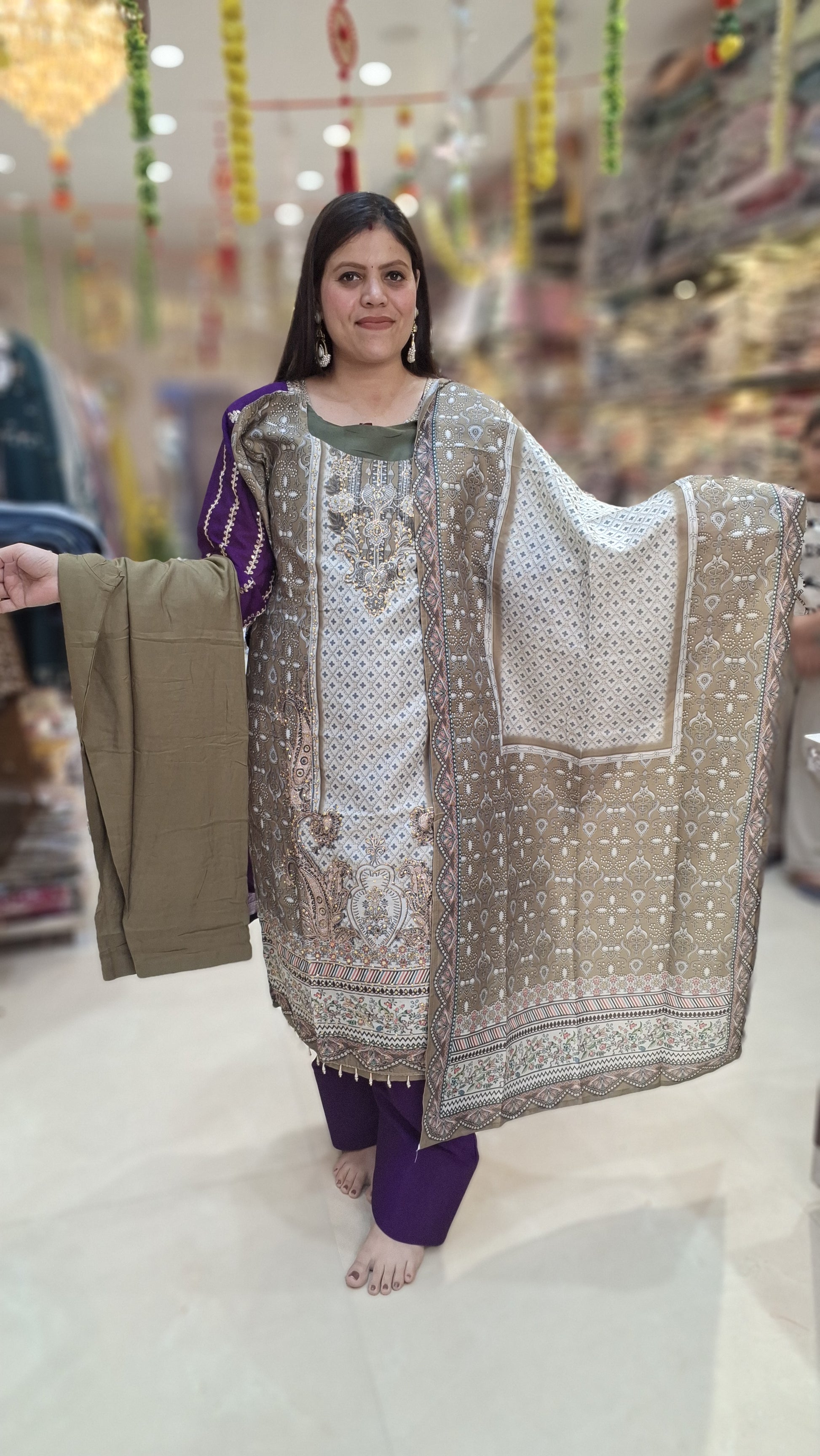 MEHNDI GREEN PURE CREPE DESIGNER 3 PC SUIT