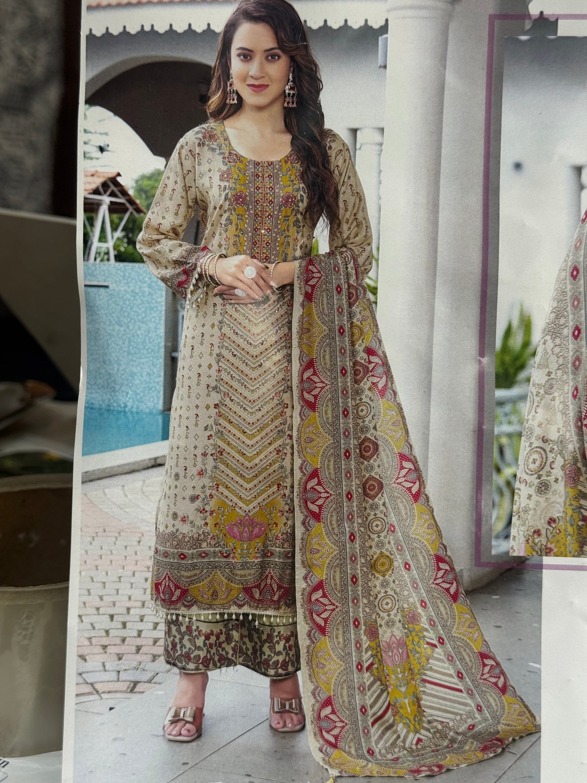MEHRRON WITH IVORY PURE CRAPE SUIT