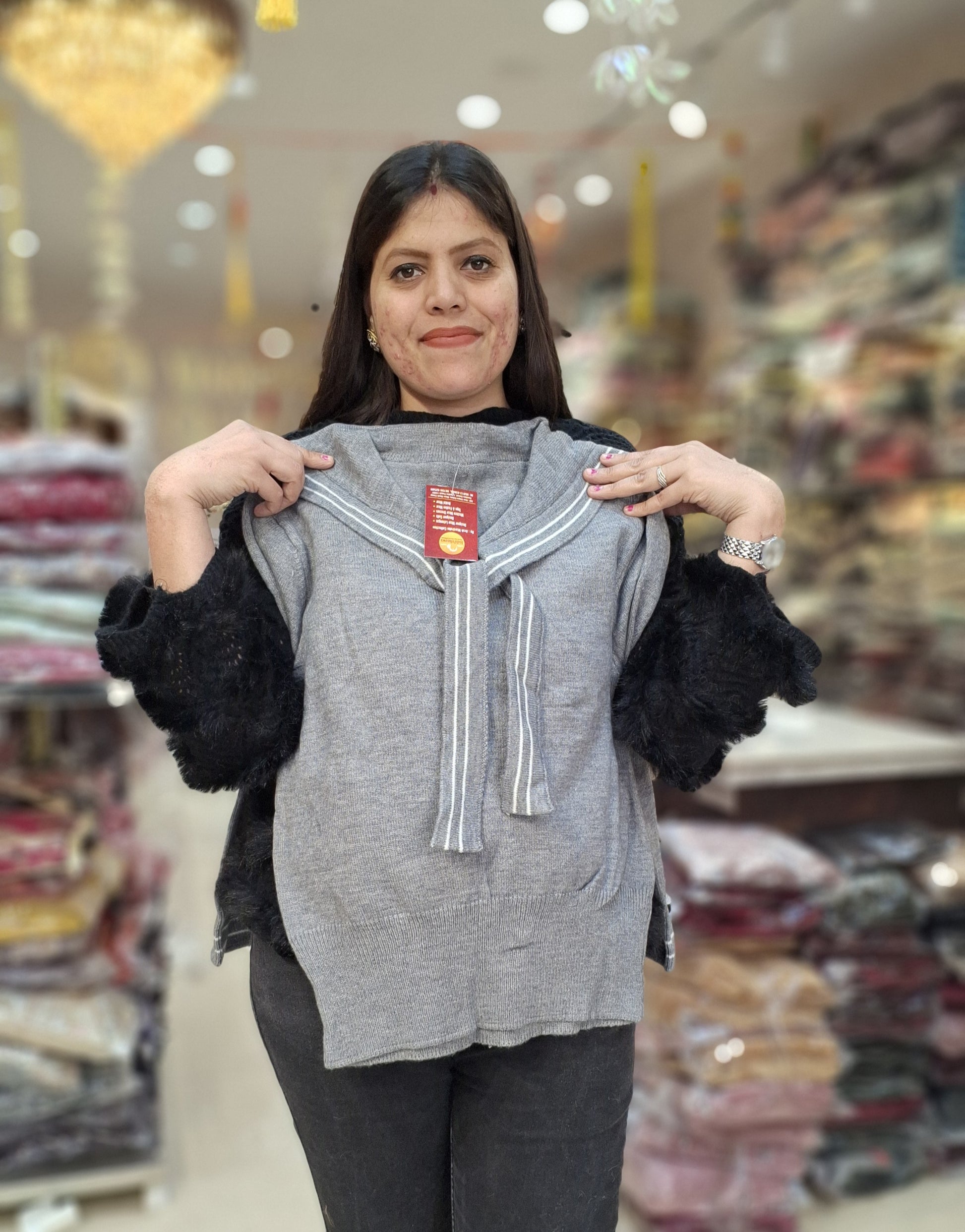 NECK DESIGN PREMIUM WOOL KOREAN TOP