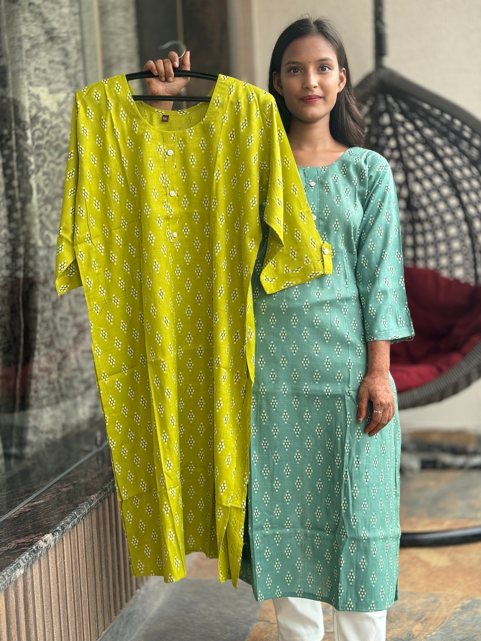 Get ready for the office with our comfortable and stylish Office Wear Cotton Kurti! Made with pure cotton fabric, this kurta features a length of 44 inches and comes in sizes XL to XXXL, ensuring a perfect fit for everyone. Look professional and feel comfortable all day long.