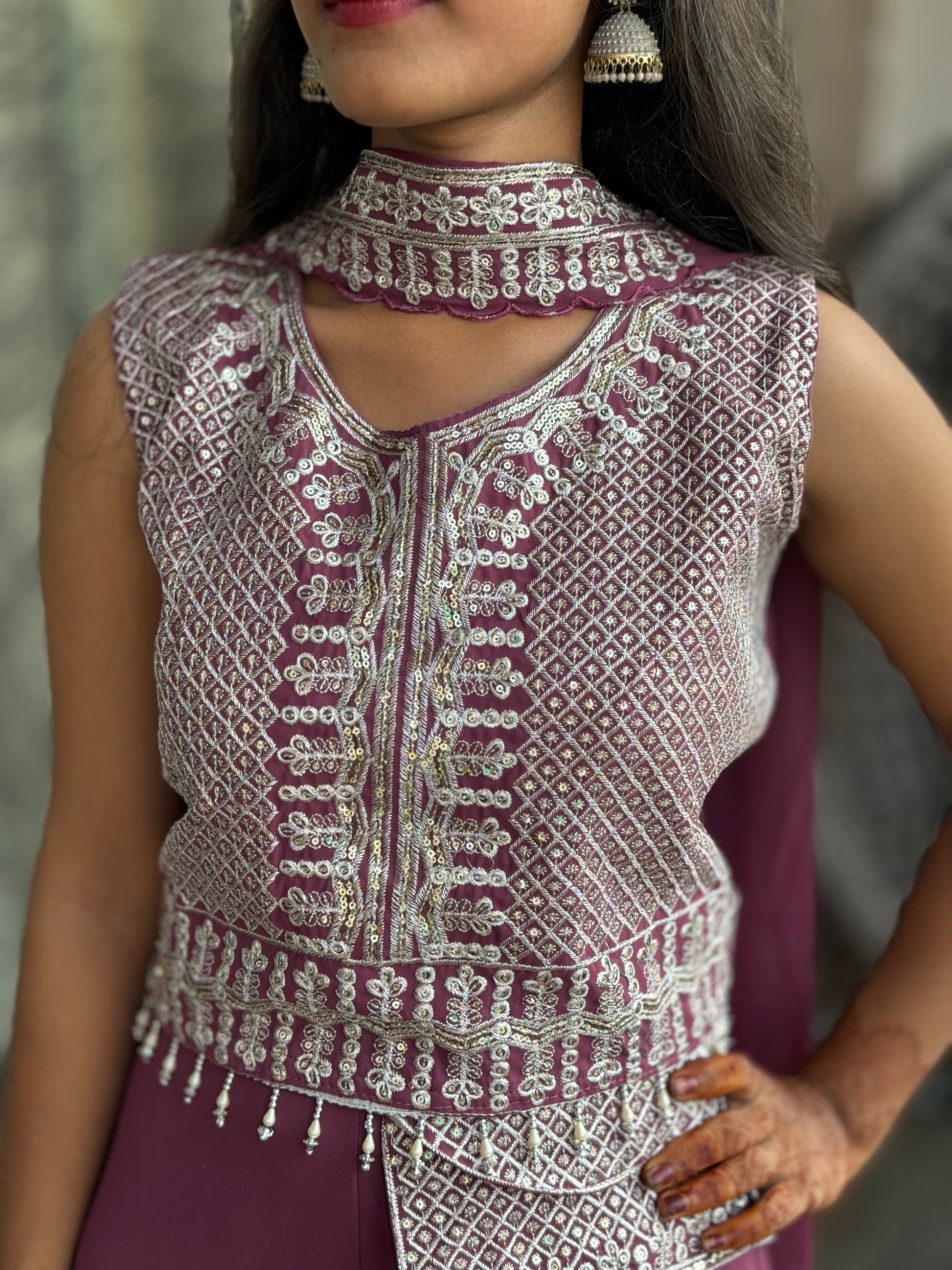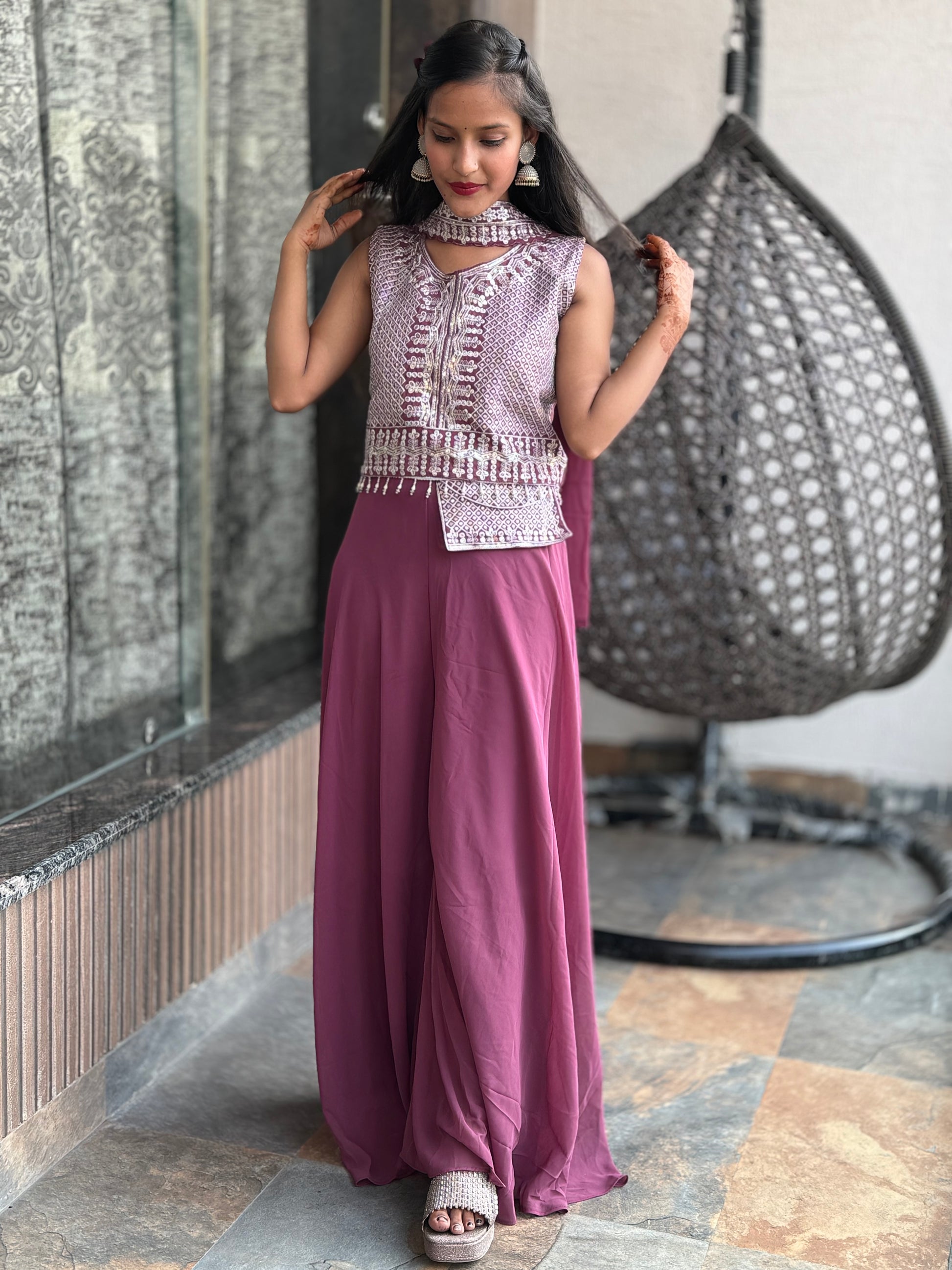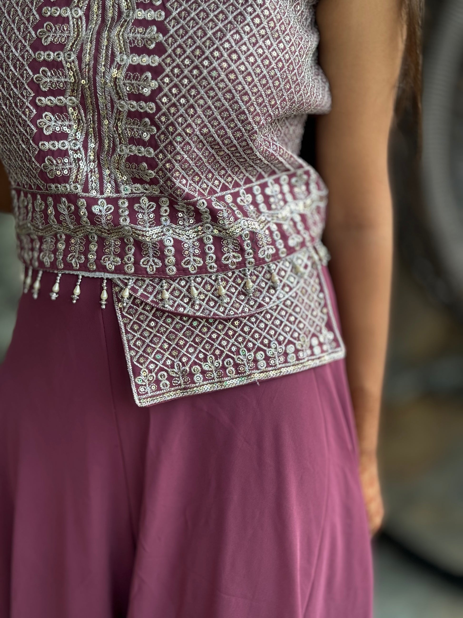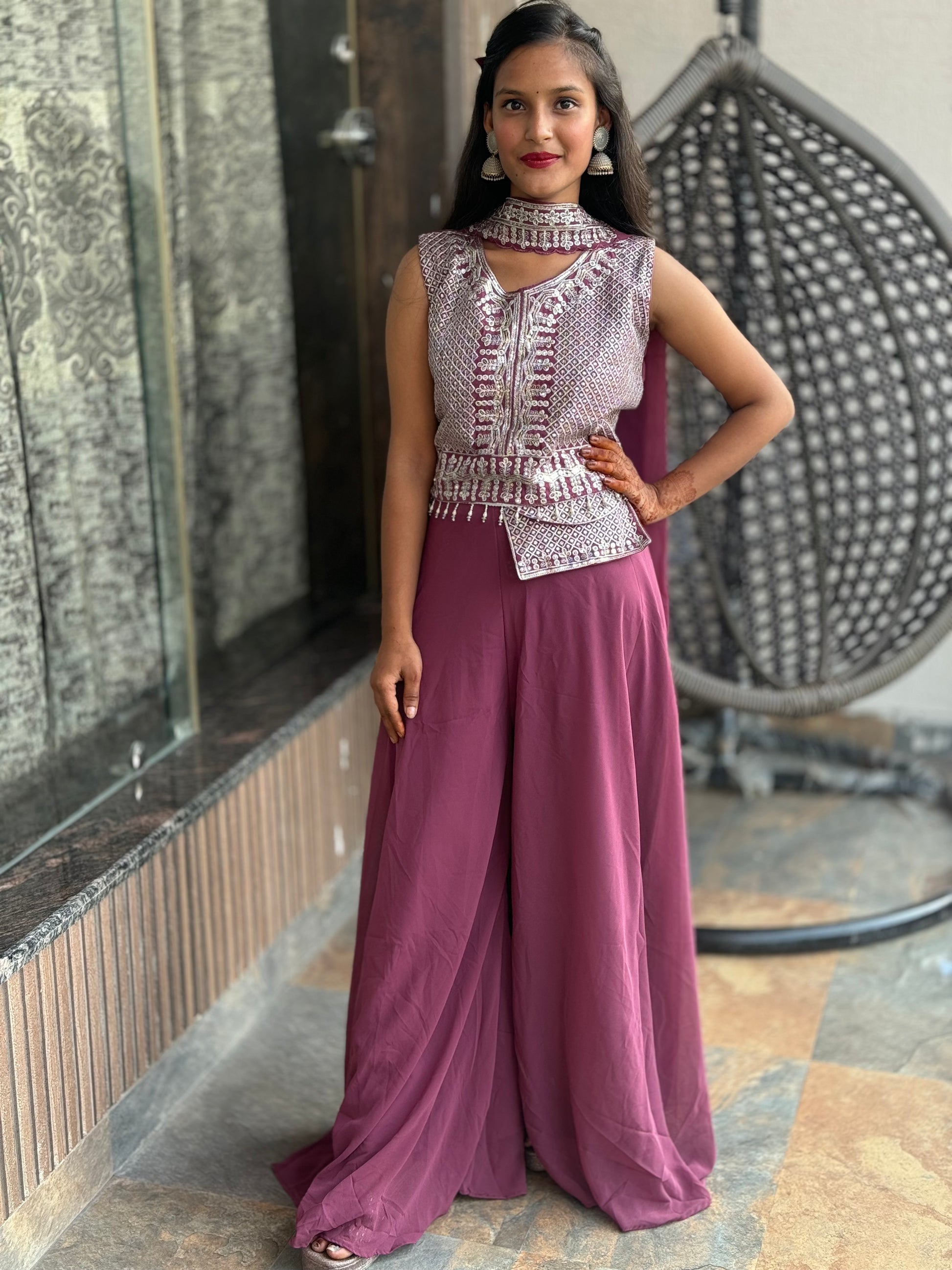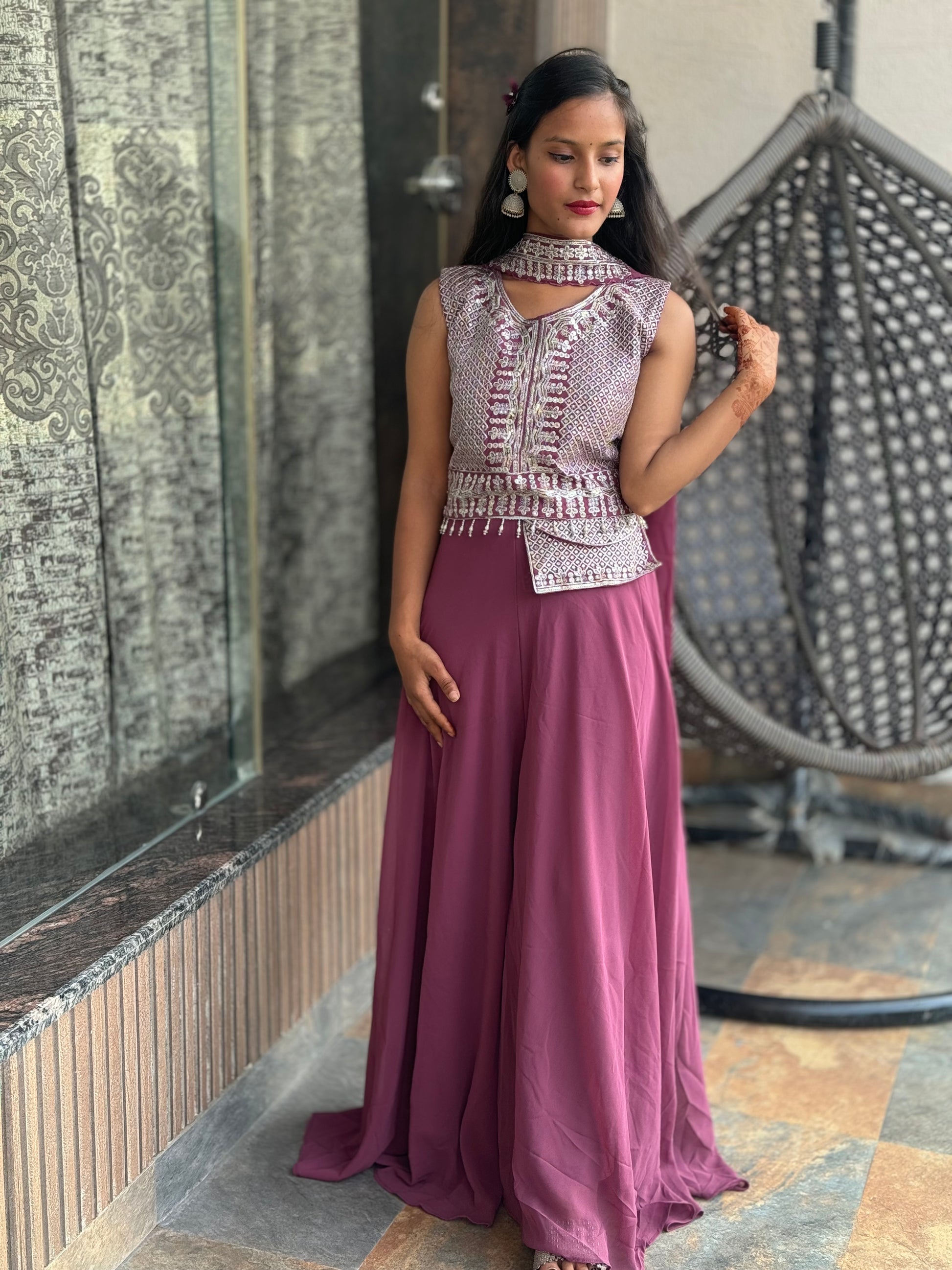 Effortlessly divide up your outfit with the versatile ONION PINK 2 PIECE DIVIDER. Available in sizes S to XXL, this divider can easily be altered for the perfect fit. Made of soft georgette fabric, it features a heavy divider that adds a touch of elegance to any look. Top length is 16 inches, bottom length is 42 inches.