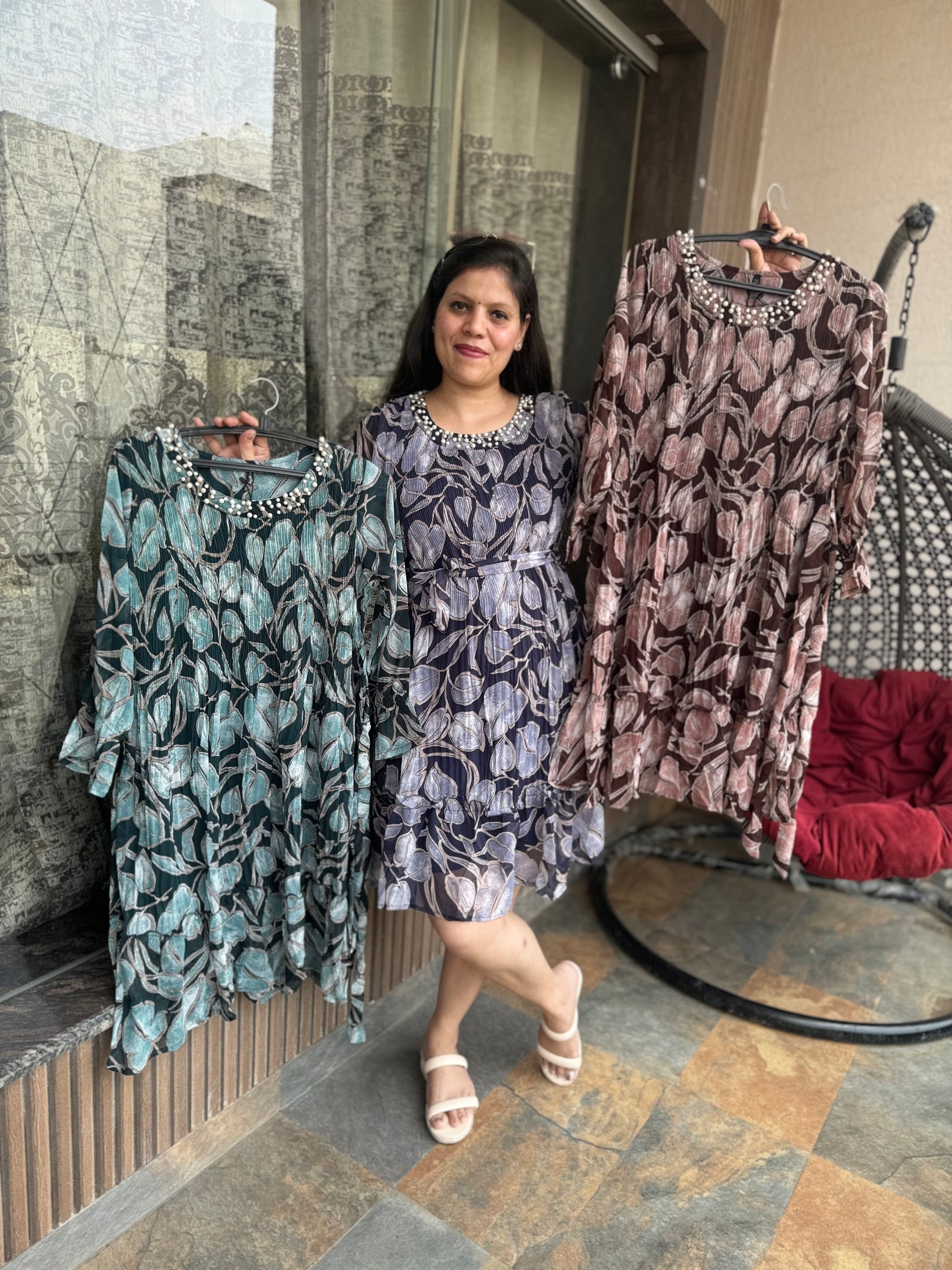 Get ready to make a statement with our Pearl Dress. Crafted with luxurious Georget fabric, this dress comes in a range of sizes from S to 4XL (also known as Free Size). The dress length of 40 inches ensures a flattering fit for any occasion. Elevate your wardrobe with this versatile and elegant dress.