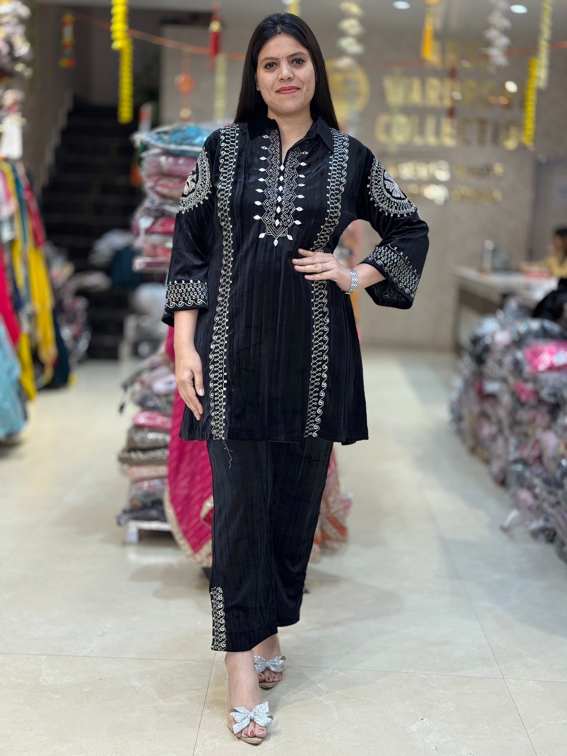 PLUS SIZE A-LINE DESIGN WITH MIRROR WORK VELVET CORDSET