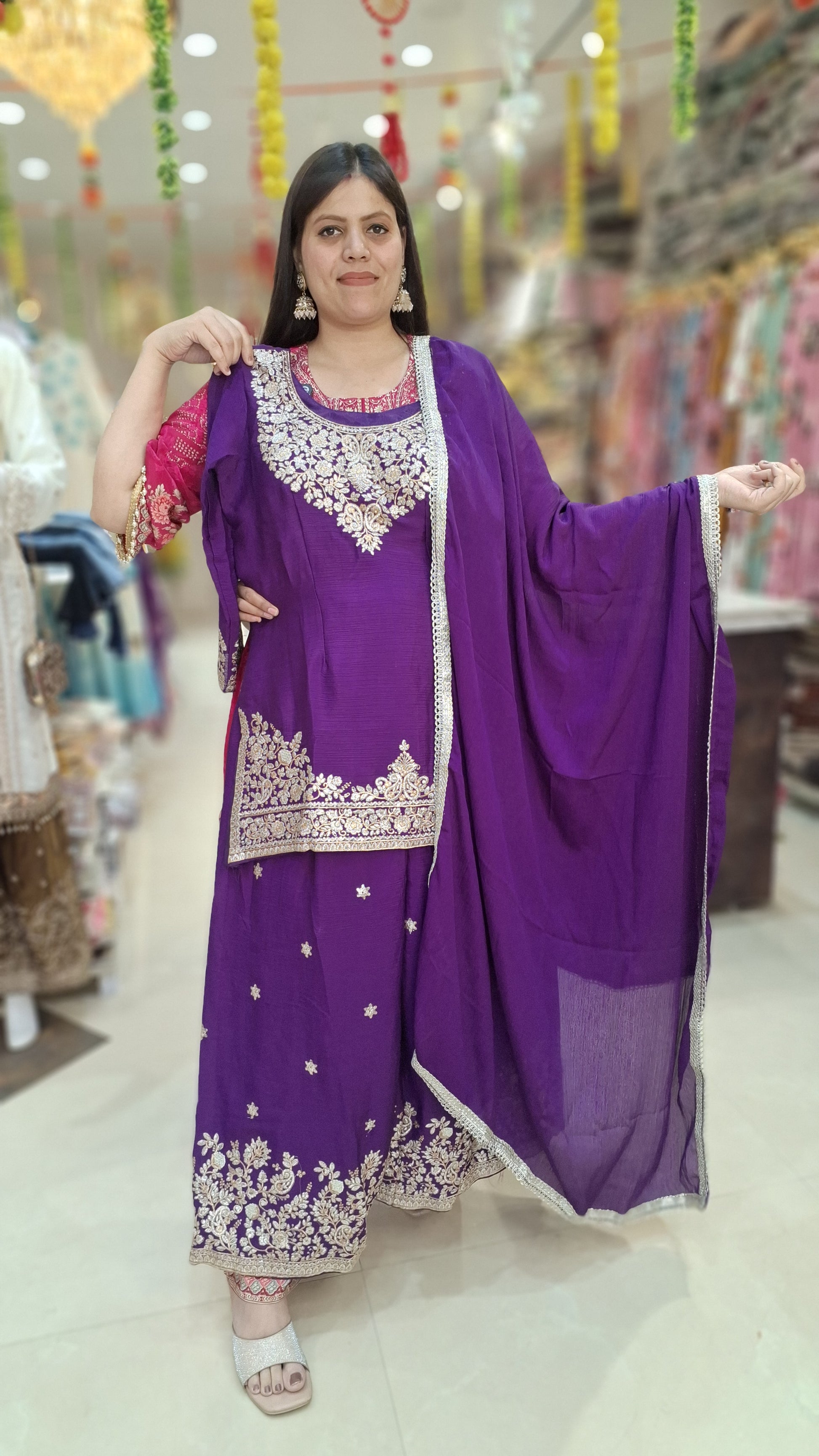 PREMIUM CHINON PAKISTANI WORK 3 PC SUIT WITH JAFA STYLE BOTTOM